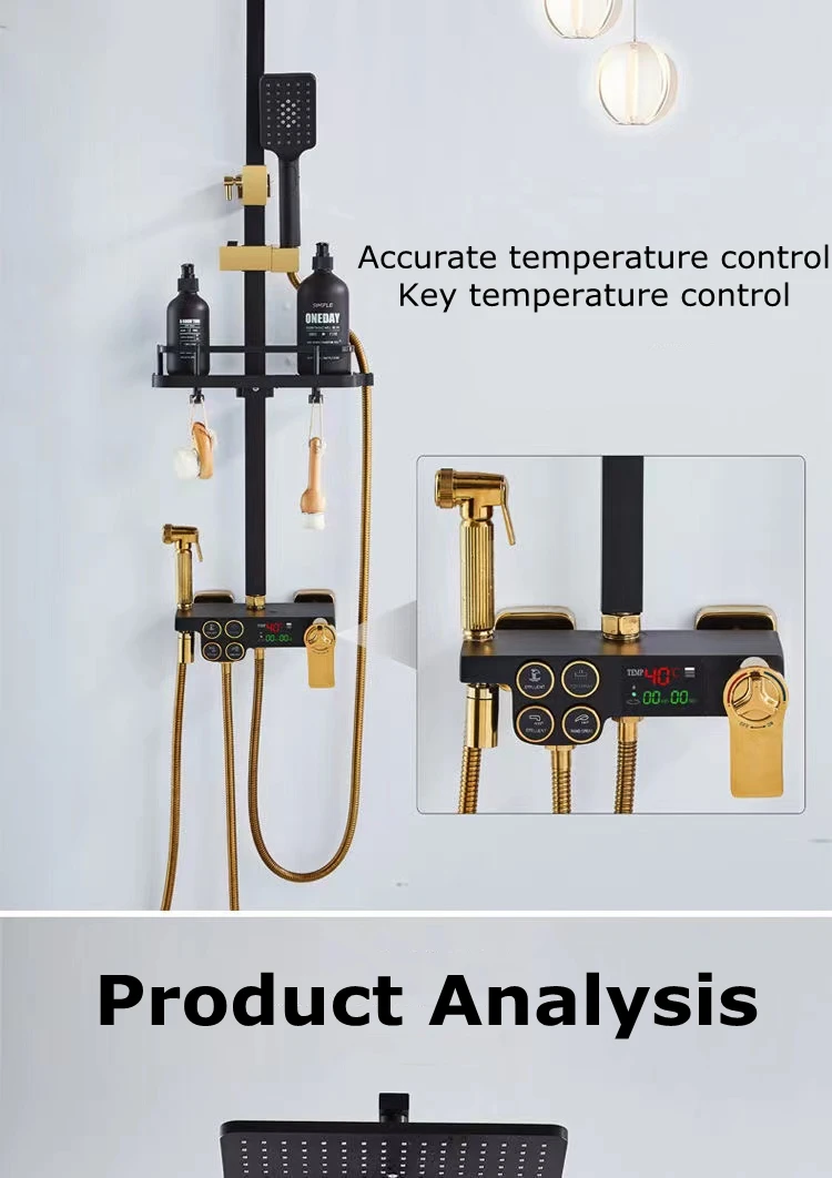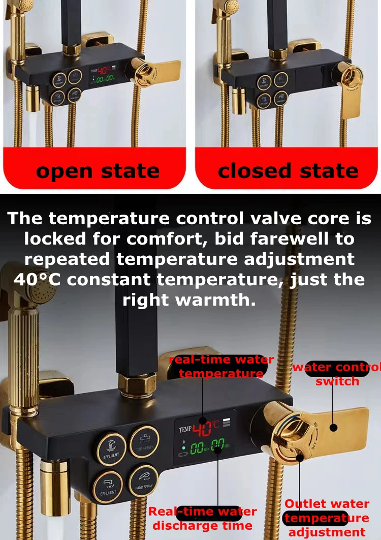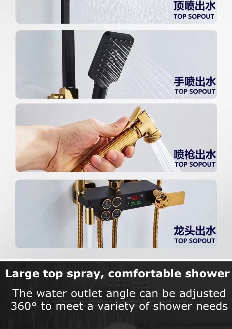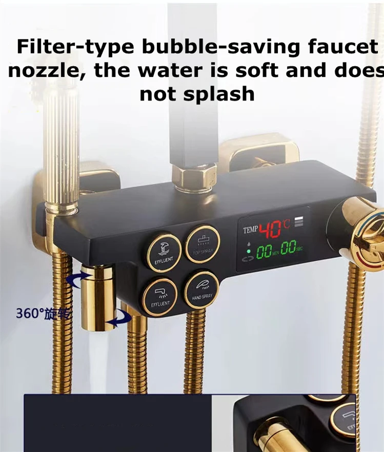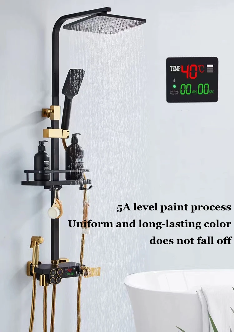 Набор смесителей для душа D-till, термостатическая латунная спа-система, смеситель «Водопад» с цифровым дисплеем, черный золотой спрей из нержавеющей стали