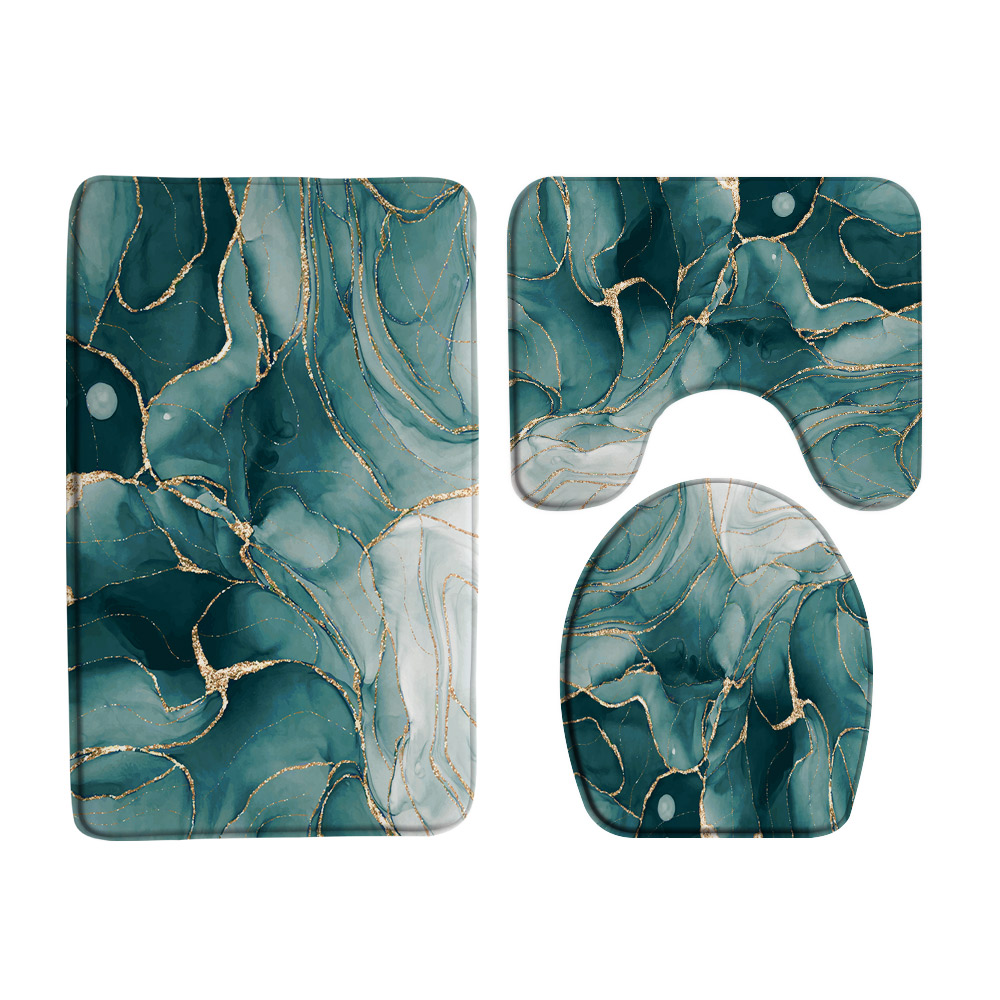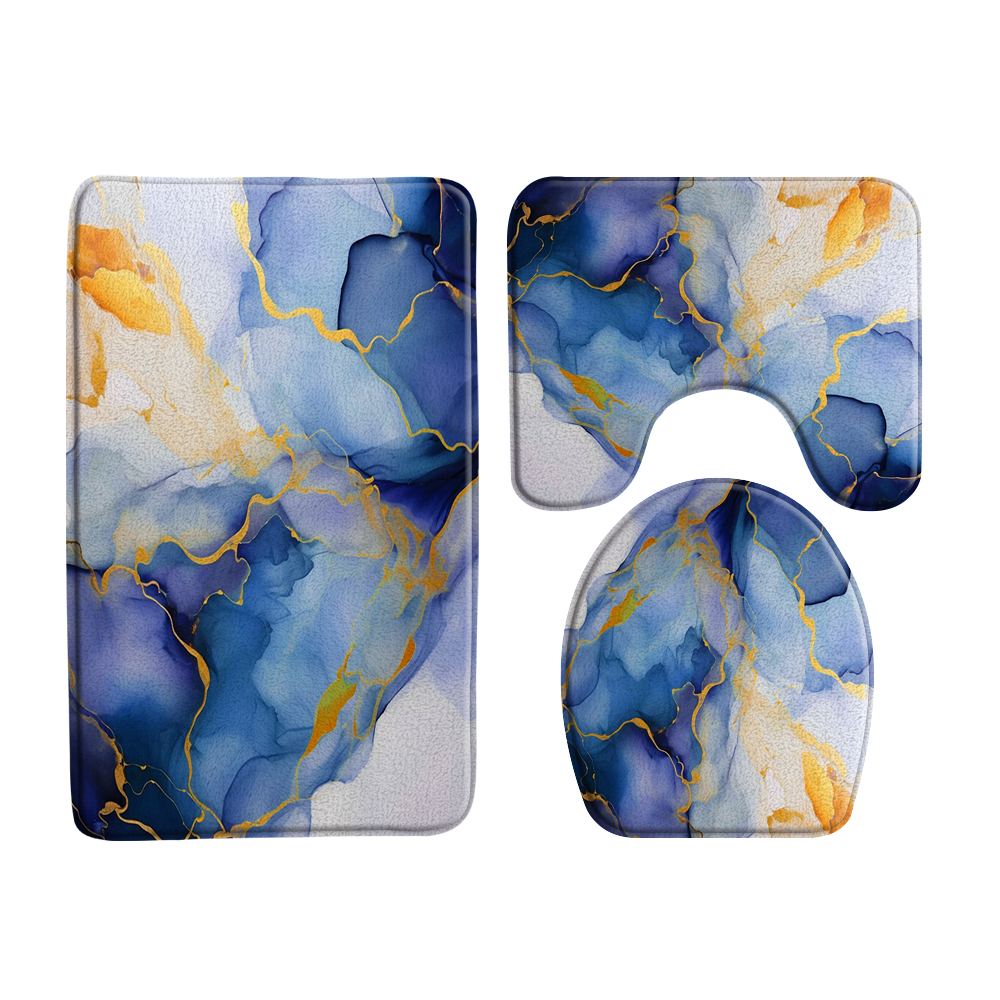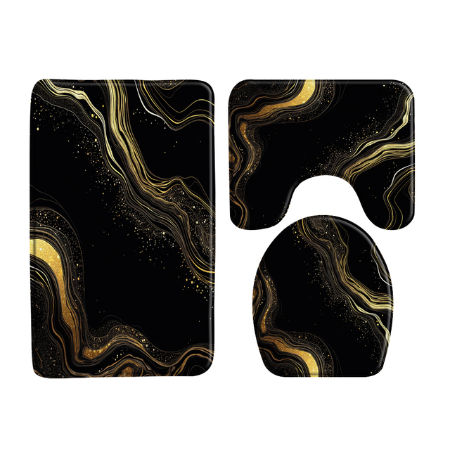 Набор современных мраморных ковриков для ванной, с золотыми линиями, с рельефным рисунком, абстрактный художественный ковер, декор для ванной комнаты, Нескользящие коврики, крышка для туалета
