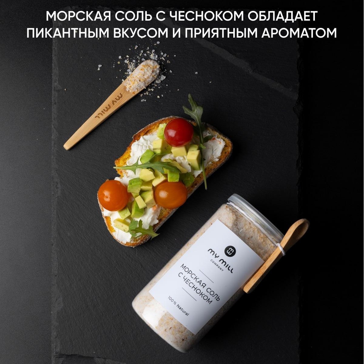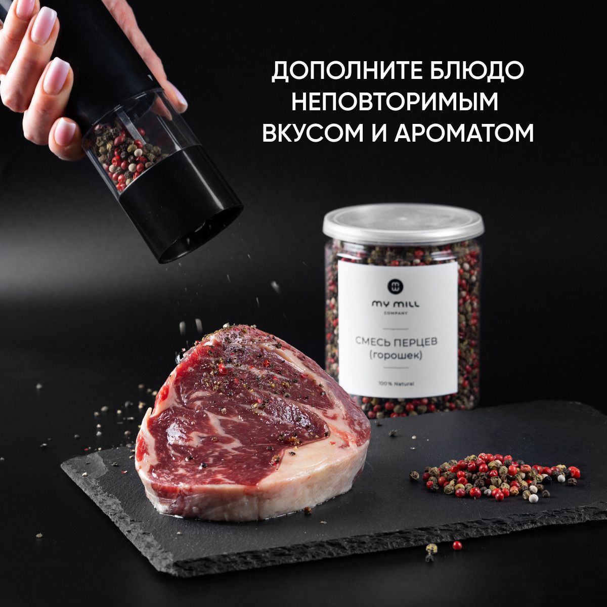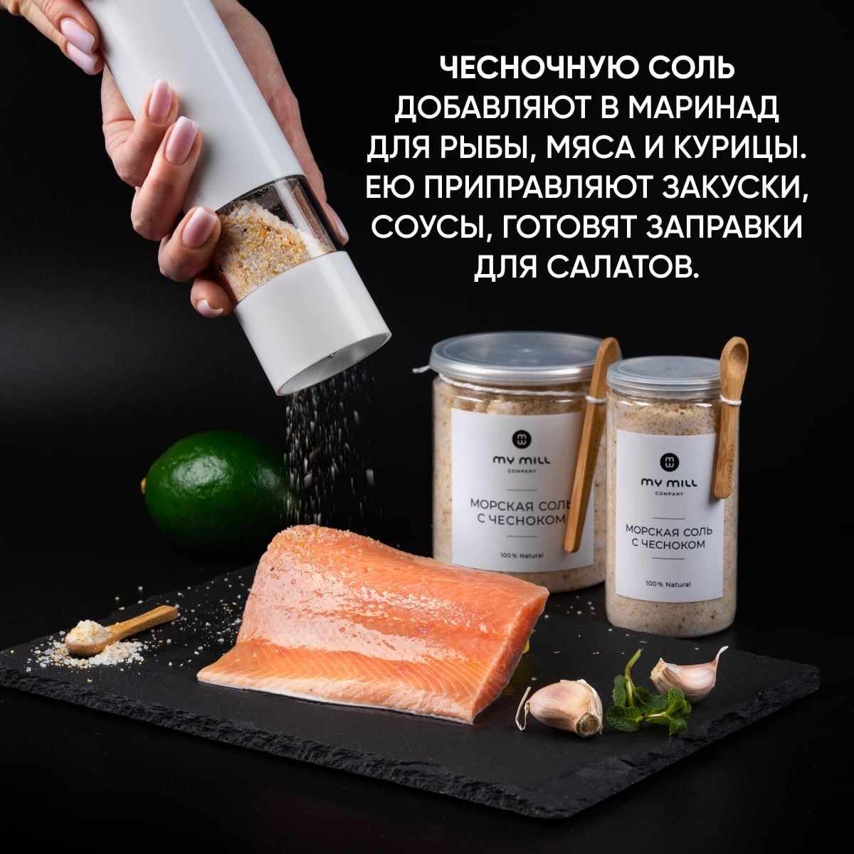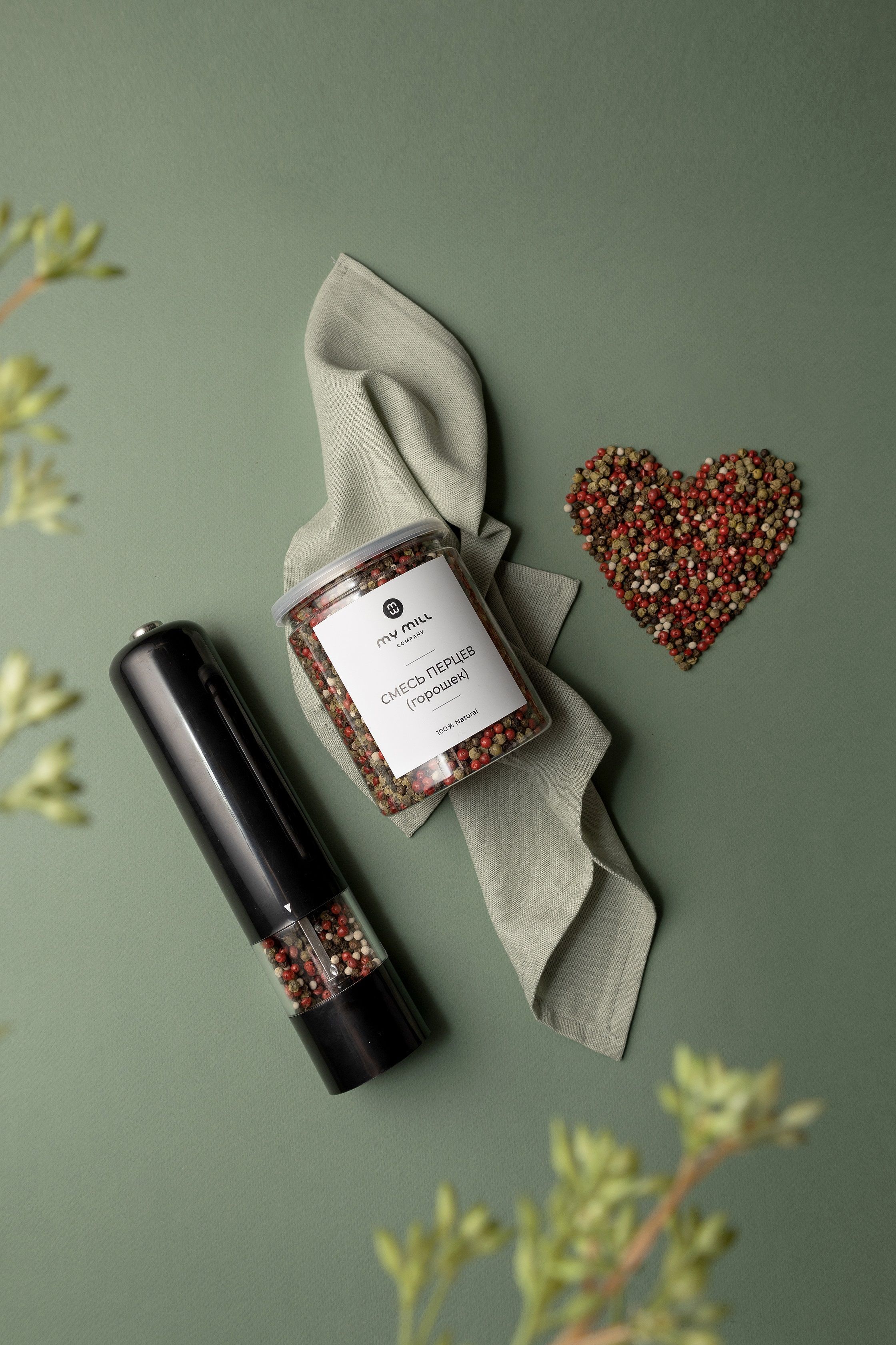 Набор специй и пряностей My mill company. Морская пищевая соль с чесноком, смесь 4 перцев горошком и паприка копченая молотая.