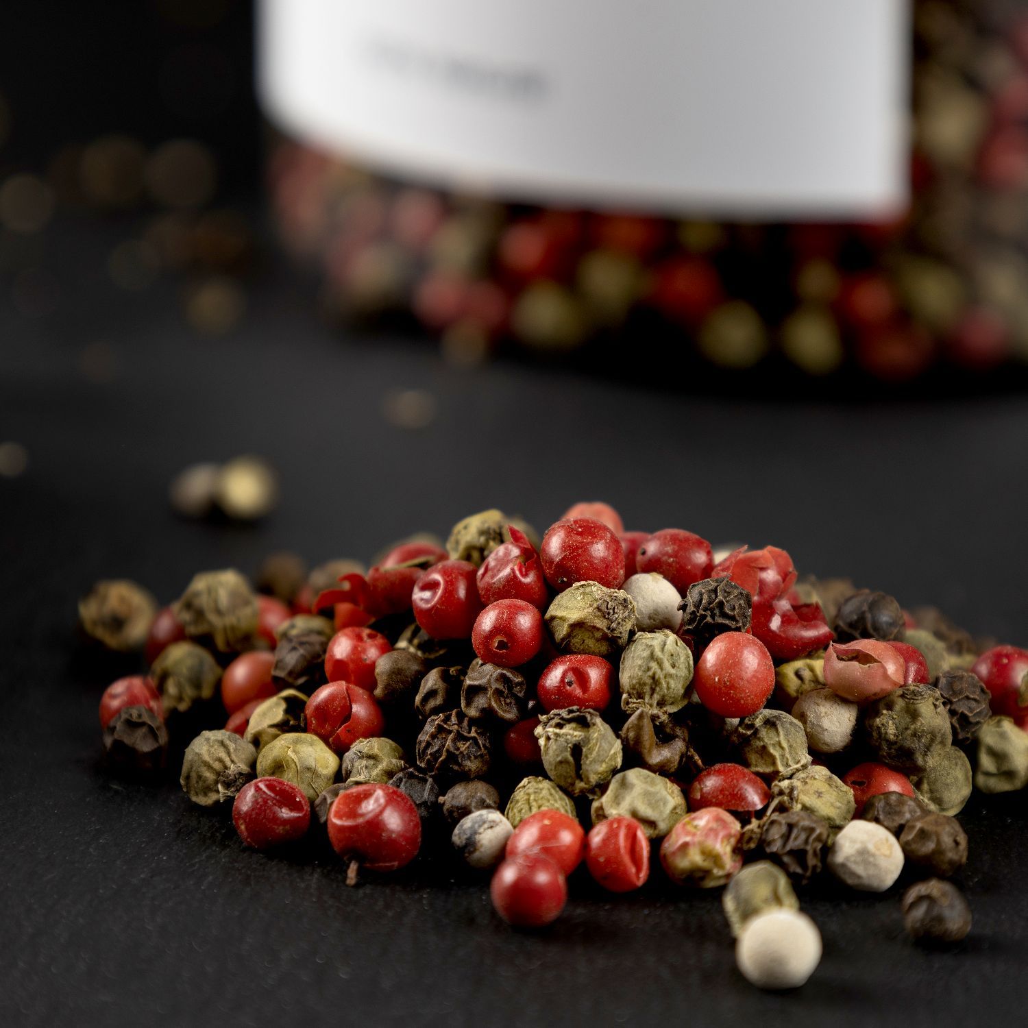Перец горошком смесь (перец розовый, перец белый, перец черный, перец зеленый), красная паприка копченая молотая, соль морская пищевая с чесноком.