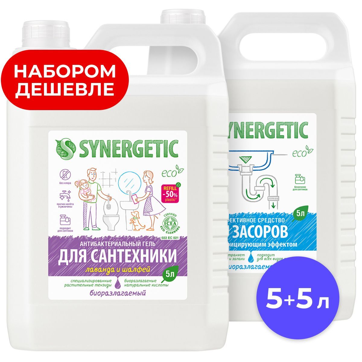 Набор средств Synergetic для ванной комнаты 5+5 л