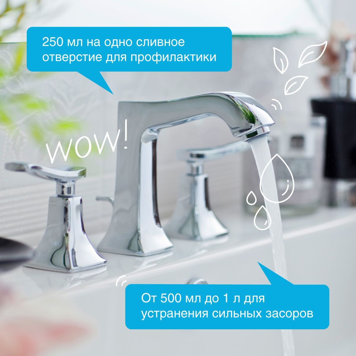 Средство для устранения засоров: Подготовленная вода > 30%, сода > 30%, комплекс растительных А-тензидов < 5%. Средство для мытья сантехники: Подготовленная вода > 30%; комплекс биоразлагаемых кислот (гликолевая, лимонная, молочная) 5–15%; комплекс биоразлагаемых Н-тензидов (ПАВ из растительного масла) < 5%; загуститель (ксантановая камедь) < 5%; гипоаллергенная парфюмерная композиция с маслами лаванды, шалфея и бергамота и муската < 0,5%; пищевой краситель < 0,5%.
