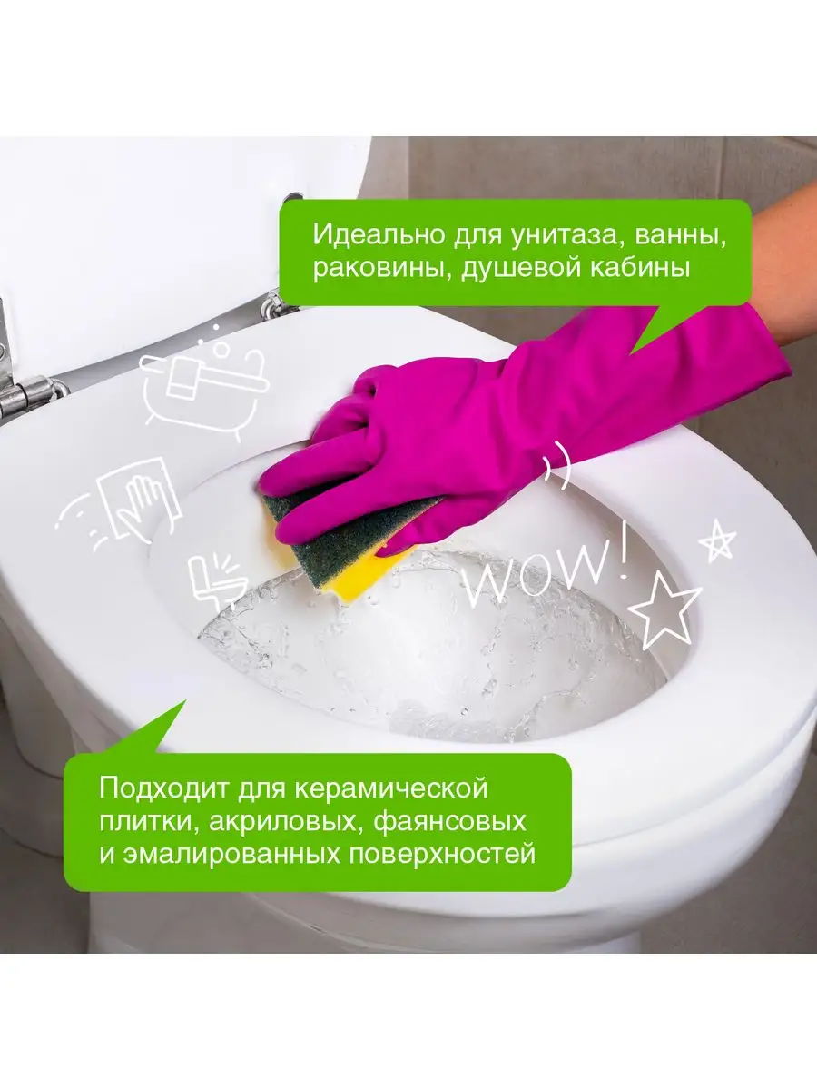 Назначение средства для уборки ванной комнаты и туалета; Для уборки сантехники; очищение поверхностей