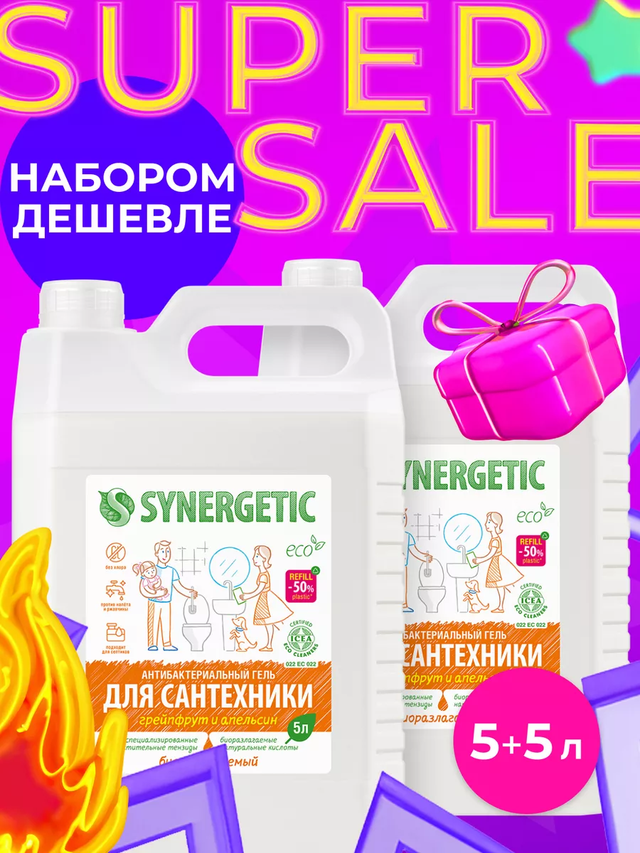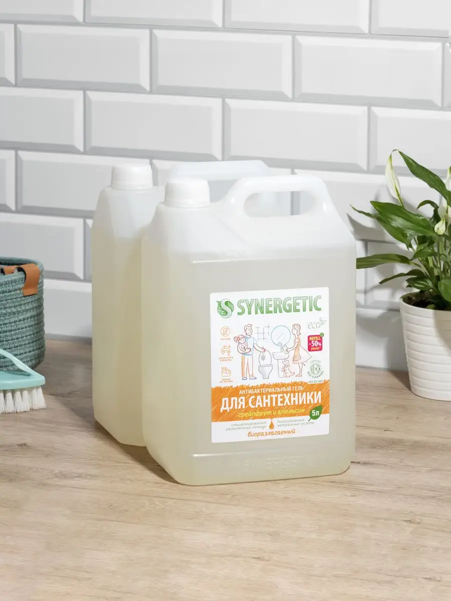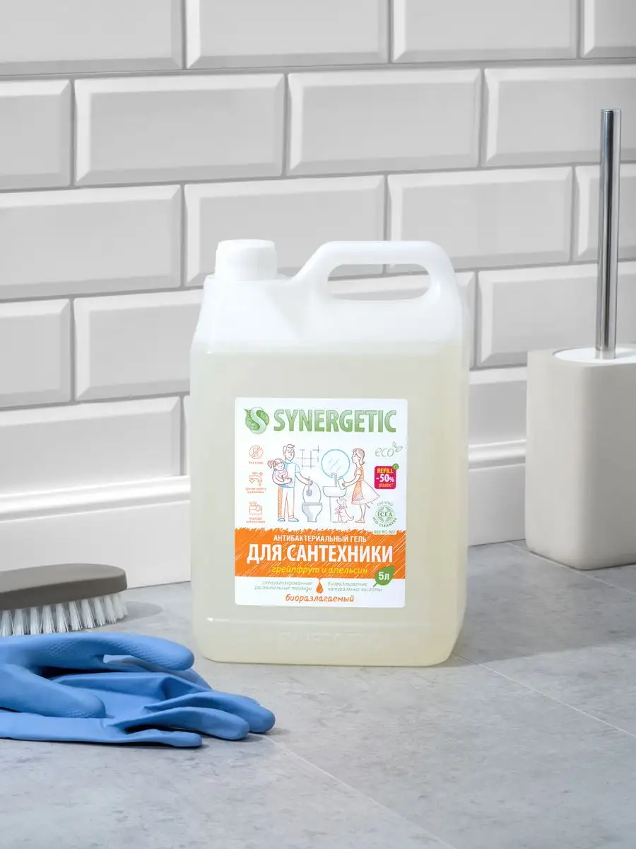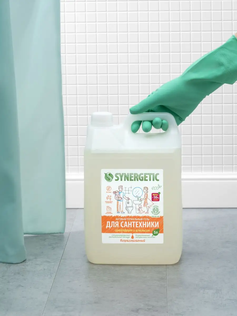 Описание: Концентрированное биоразлагаемое средство для мытья сантехники SYNERGETIC «Грейпфрут и апельсин» – универсальное чистящее средство для ежедневной уборки поверхностей, устойчивых к кислотным моющим средствам, в ванных комнатах и санузлах: ванны, душевой кабины и эмалированных поверхностей. Комплекс натуральных кислот (лимонной, гликолевой и молочной) и Н-тензидов, полученных из растительного масла, устраняет известковый налёт, ржавчину, камень и минеральные загрязнения даже в холодной и жесткой воде. Средство с антибактериальным эффектом убивает микробы и бактерии, а также эффективно устраняет неприятные запахи. Гипоаллергенная отдушка с маслами грейпфрута, апельсина, померанца и мандарина оставляет свежий аромат. Международный сертификат ICEA подтверждает биоразлагаемость, безопасность и эффективность средства. Гель полностью смывается водой, безопасен для септических установок. Не содержит: хлор, фосфаты, оптические отбеливатели, SLS, SLES, агрессивные кислоты и ПАВ. Инструкция по применению : Нанести на обрабатываемую поверхность, выдержать 10–15 минут, почистить, смыть водой. НЕ ИСПОЛЬЗОВАТЬ на горячих и повреждённых поверхностях; поверхностях из мрамора и цветных металлов; деревянных поверхностях. Перед применением проверить совместимость средства с обрабатываемой поверхностью на небольшом незаметном участке. Условия хранения: Хранить при температуре не выше 45 °C; средство замерзает, после размораживания и перемешивания сохраняет свои свойства. Под воздействием солнечных лучей возможно изменение цвета. *** У нас есть акции и распродажи, вы можете купить наши товары в подарок со скидкой!