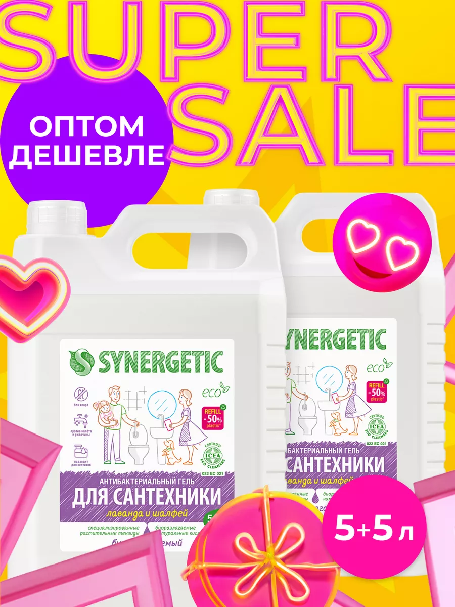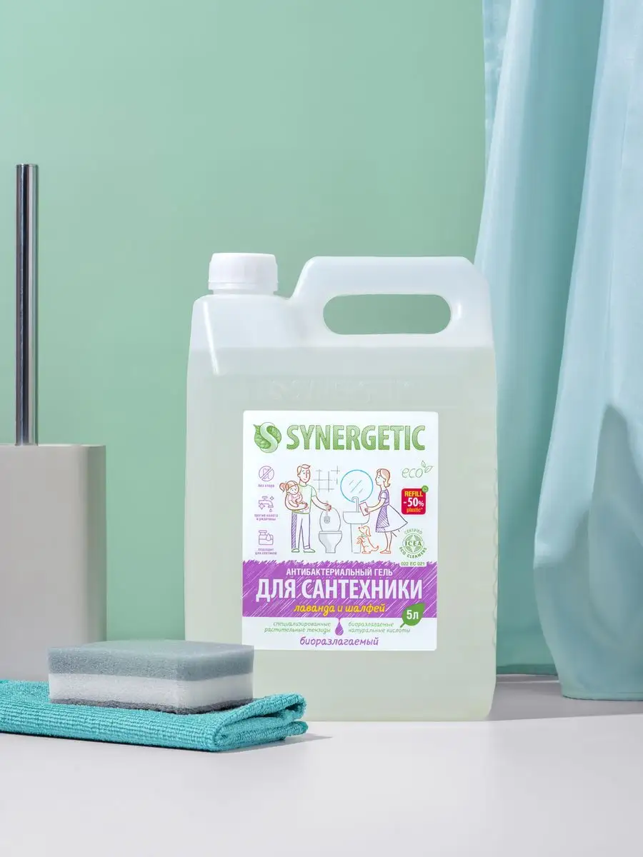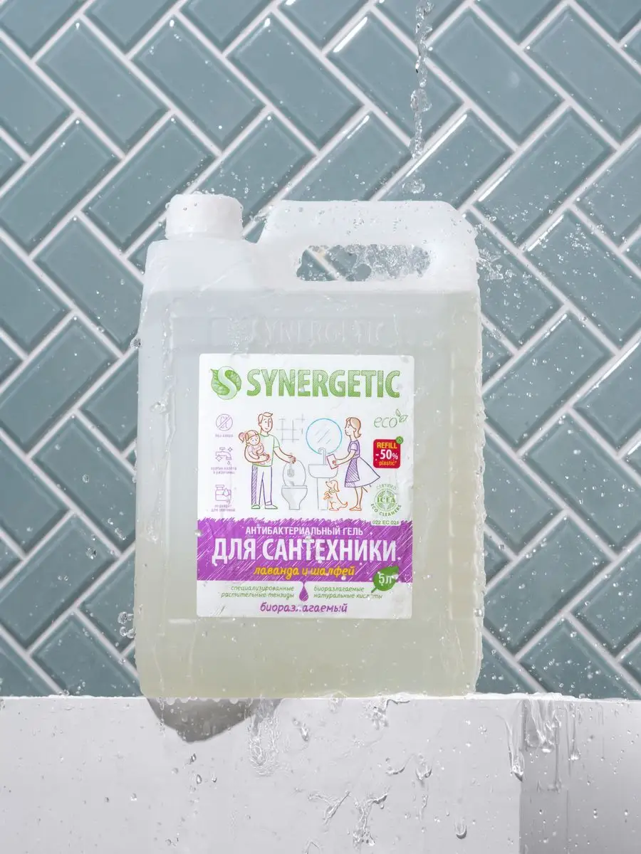 Описание: Концентрированное биоразлагаемое средство для мытья сантехники SYNERGETIC «Лаванда и шалфей» – универсальное чистящее средство для ежедневной уборки поверхностей, устойчивых к кислотным моющим средствам, в ванных комнатах и санузлах: унитаза, душевой кабины, керамической плитки, акриловых. Комплекс натуральных кислот (лимонной, гликолевой и молочной) и Н-тензидов, полученных из растительного масла, устраняет известковый налёт, ржавчину, камень и минеральные загрязнения даже в холодной и жесткой воде. Средство с антибактериальным эффектом убивает микробы и бактерии, а также эффективно устраняет неприятные запахи. Гипоаллергенная отдушка с маслами лаванды, шалфея, лавандина, бергамота и муската оставляет свежий аромат. Международный сертификат ICEA подтверждает биоразлагаемость, безопасность и эффективность средства. Гель полностью смывается водой, безопасен для септических установок. Не содержит: хлор, фосфаты, оптические отбеливатели, SLS, SLES, агрессивные кислоты и ПАВ. Инструкция по применению : Нанести на обрабатываемую поверхность, выдержать 10–15 минут, почистить, смыть водой. НЕ ИСПОЛЬЗОВАТЬ на горячих и повреждённых поверхностях; поверхностях из мрамора и цветных металлов; деревянных поверхностях. Перед применением проверить совместимость средства с обрабатываемой поверхностью на небольшом незаметном участке. Условия хранения: Хранить при температуре не выше 45 °C; средство замерзает, после размораживания и перемешивания сохраняет свои свойства. Под воздействием солнечных лучей возможно изменение цвета. *** У нас есть акции и распродажи, вы можете купить наши товары в подарок со скидкой!