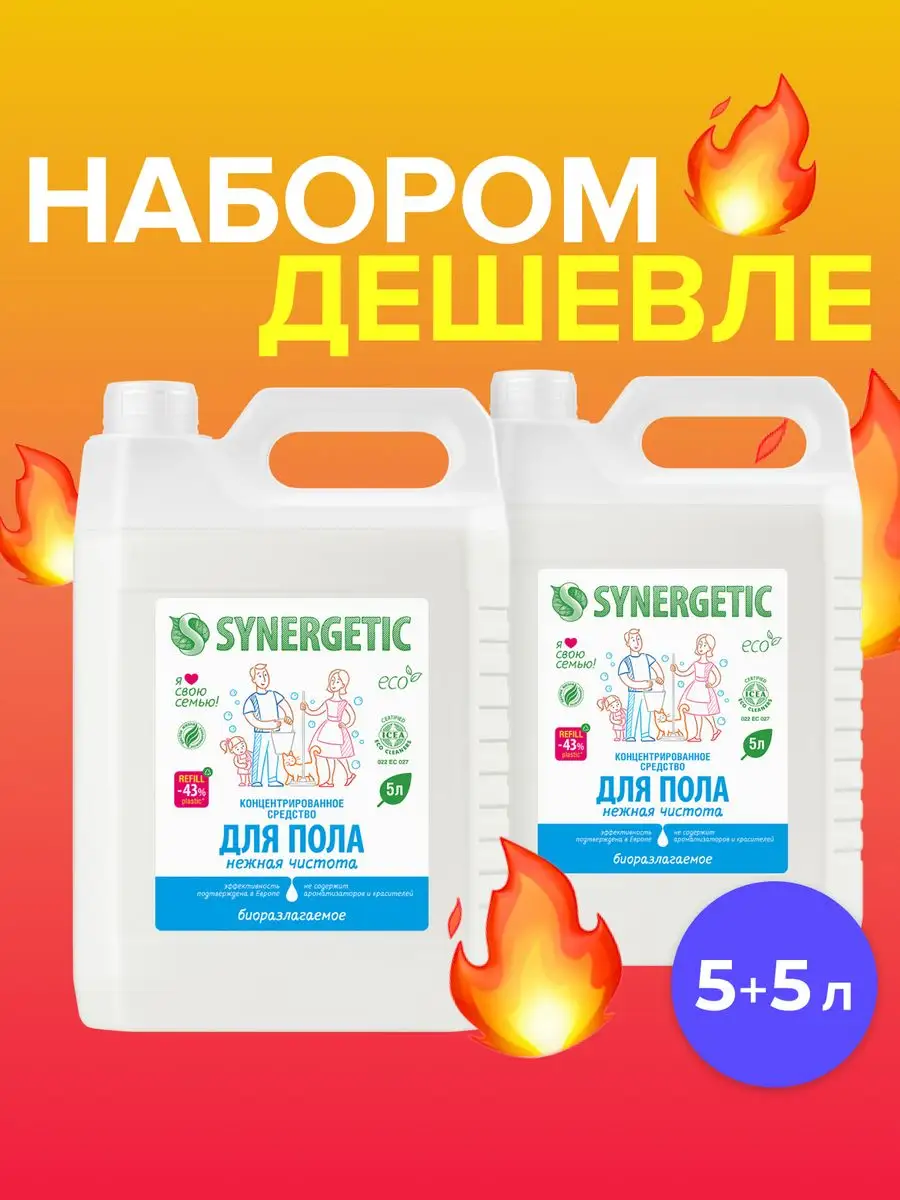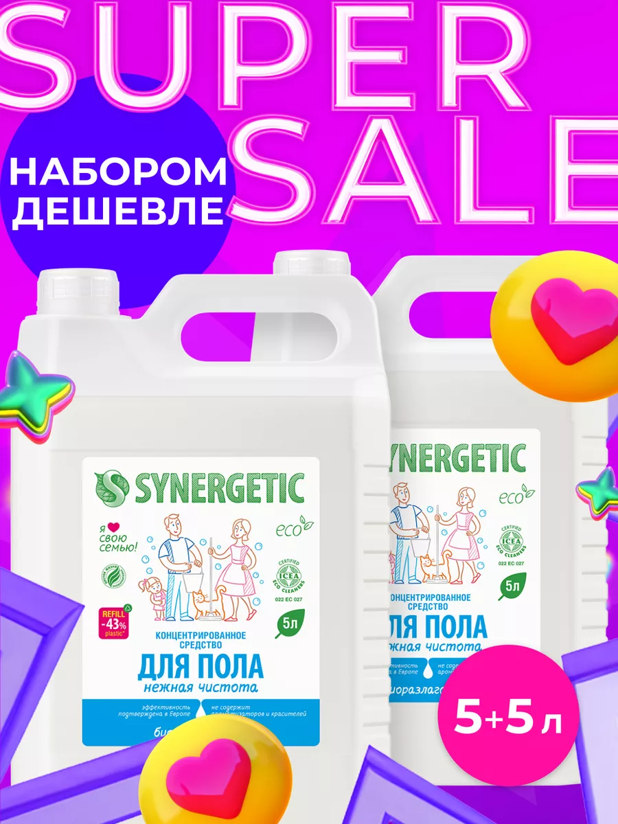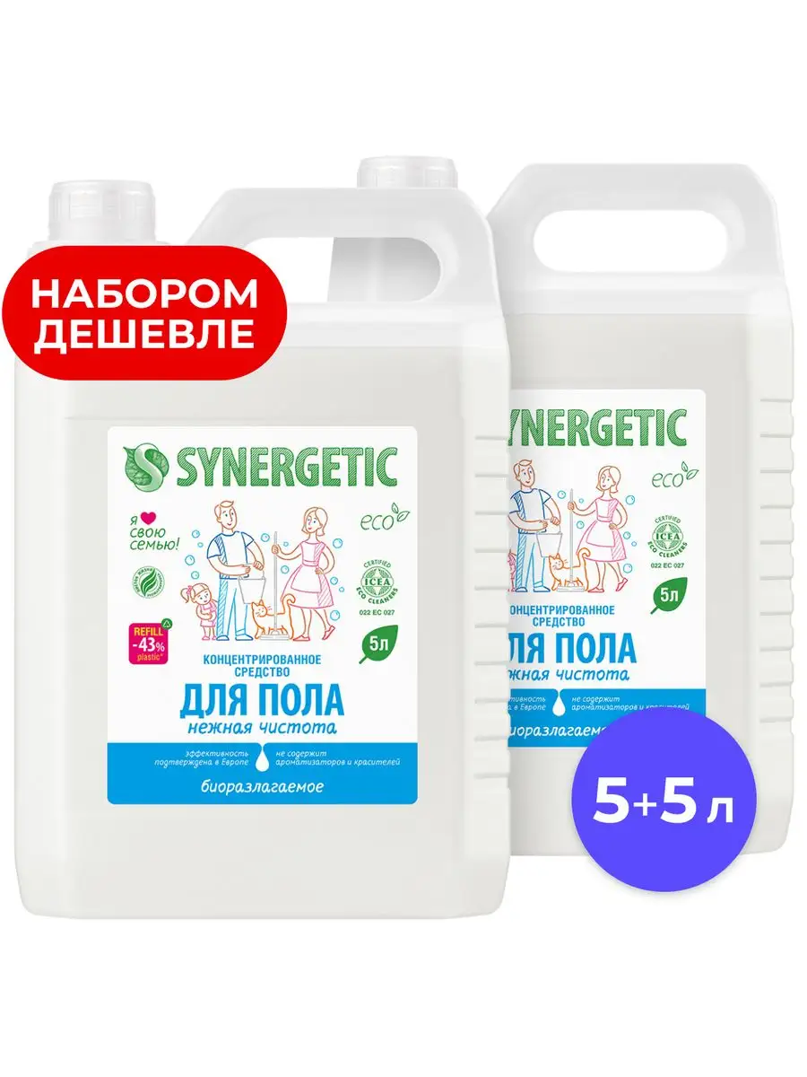 Описание: Биоразлагаемое концентрированное средство для мытья поверхностей SYNERGETIC «Нежная чистота» – универсальное средство для ежедневной и генеральной уборки пола и других поверхностей: столов, стен, потолка. Не содержит красителей и ароматизаторов, дерматологически протестировано в Европе. Уникальный комплекс растительных тензидов эффективно удаляет загрязнения и неприятные запахи даже в холодной воде. Комплекс зеленых хелатов предотвращает повторное оседание загрязнений на поверхности. Подходит для паркета, ламината, плитки, линолеума, металла, стекла, пластика, дерева. Международный экологический сертификат ICEA подтверждает биоразлагаемость, безопасность и эффективность средства. Не требует смывания, не оставляет разводов на поверхности. Подходит для уборки в детских комнатах и учреждениях. Безопасно для домов с питомцами. Инструкция по применению : Добавить в воду 30 мл средства на пять литров воды для обычной уборки или 120 мл средства на пять литров воды для генеральной уборки. Не требует смывания. 1 колпачок (30мл) на 5 литров воды-обычная уборка, 4 колпачка (120 мл) на 5 литров воды -генеральная уборка Условия хранения: Хранить при температуре не выше 45 °C; под воздействием солнечных лучей возможно изменение цвета. Средство замерзает, после размораживания и перемешивания сохраняет свои свойства. *** У нас есть акции и распродажи, вы можете купить наши товары в подарок со скидкой!