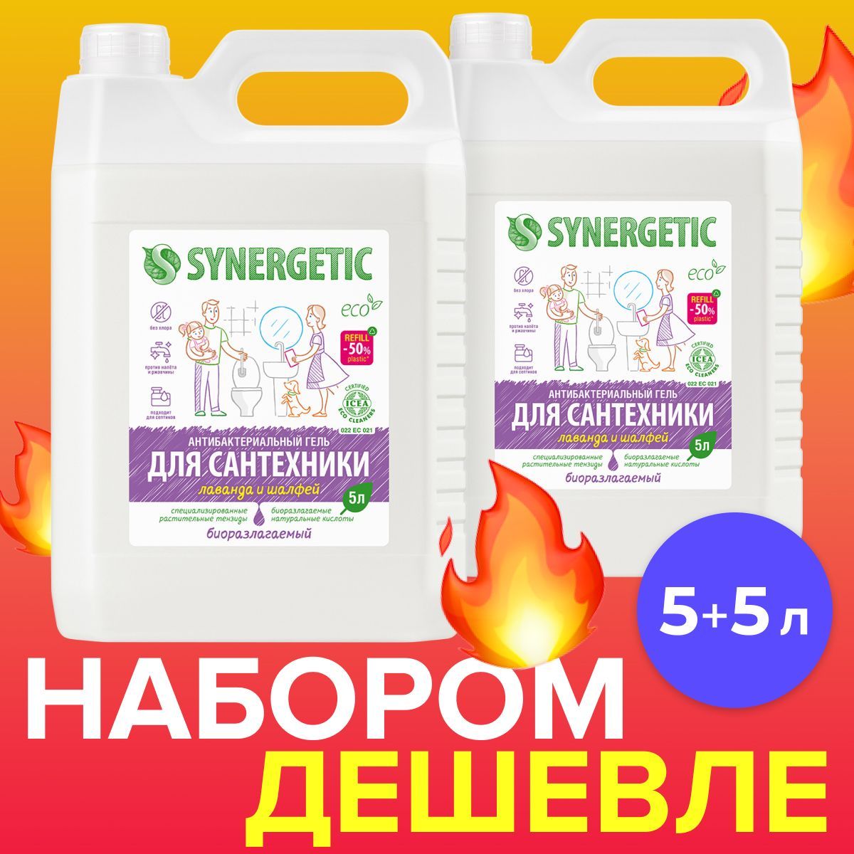 Набор Средство кислотное, биоразлагаемое для мытья сантехники "Synergetic для мытья сантехники Лаванда и шалфей" 5л + 5 л.