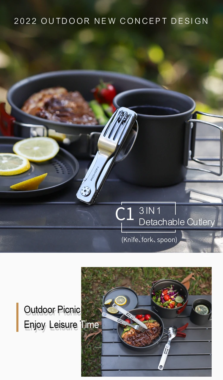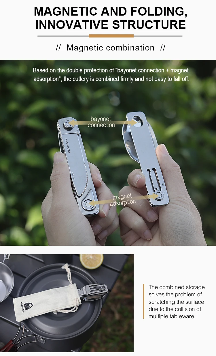 Набор столовых приборов ROXON 3 в 1 для кемпинга, нож, вилка, ложка, из нержавеющей стали, портативный и съемный