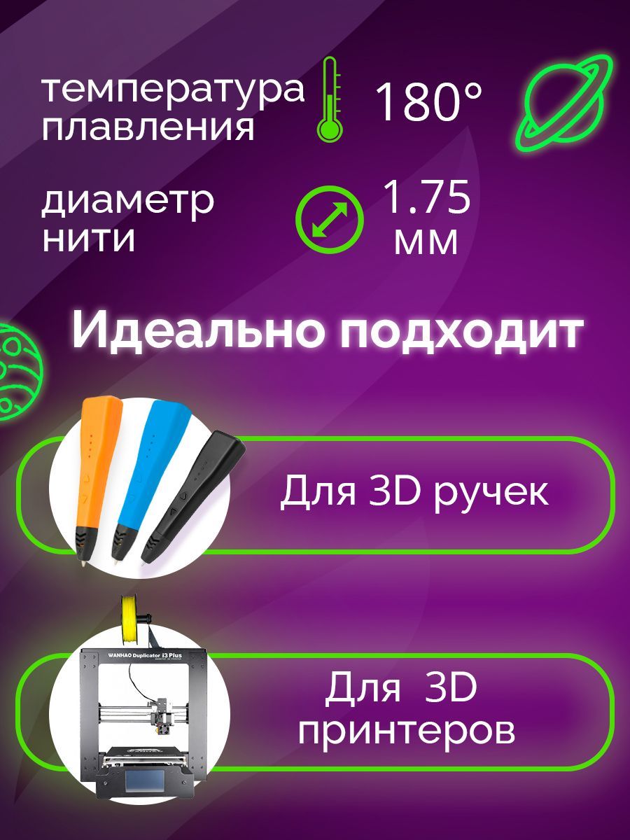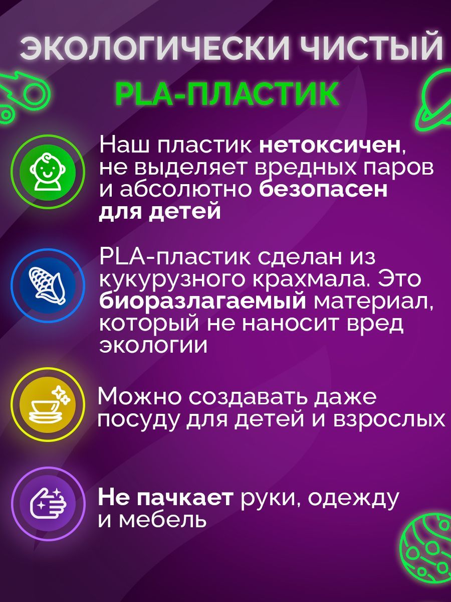 Описание: PLA - самый безопасный материал для 3Д ручек. Он не имеет запаха и абсолютно безвреден для детей, потому что его производят из сахарного тростника и кукурузы. Цвета получаются насыщенные, яркие, а подделки становятся очень долговечными. Этот набор высококачественного пластика Funtasy, в красивой подарочной многоразовой упаковке, состоит из 15 цветов по 10 метров каждый моток. Диаметр мотка - 1,75 мм и температура плавления 180-200 C являются самыми распространенными, благодаря чему этот пластик подходит к подавляющему большинству существующих 3Д ручек.