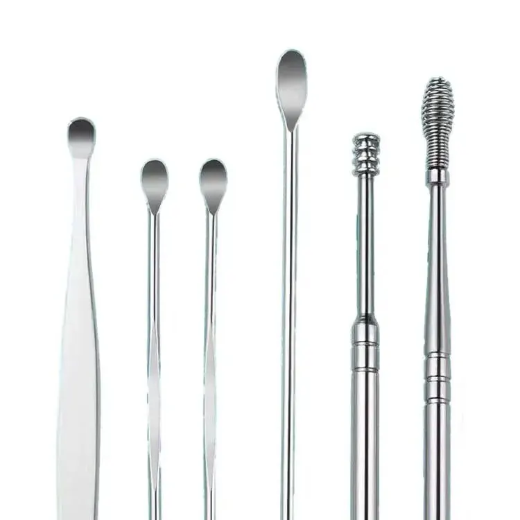 • Ложка для ушей из нержавеющей стали 6 шт.:Поставляется в наборе из 6 ушных ложек из высококачественной нержавеющей стали для долговечности и длительного использования.
