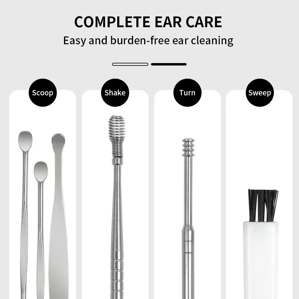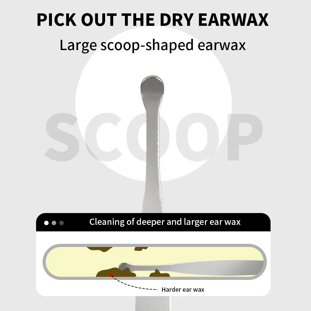 2. Эргономичный дизайн: полностью полированные инструменты с гладкой закругленной поверхностью и традиционный спиральный двусторонний дизайн, все для предотвращения раздражения или царапин, вы можете массировать слуховой проход и снимать зуд во время чистки.