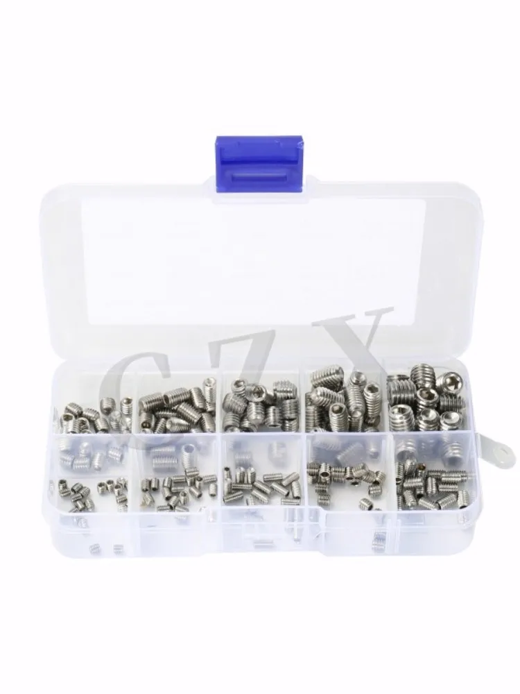 100 шт./200 шт. Набор шестигранных головок винт с плоской точкой установочный винт Ассортимент комплект из нержавеющей стали M3M4 M5 M6 M8 Безголовый установочный винт DIN913
