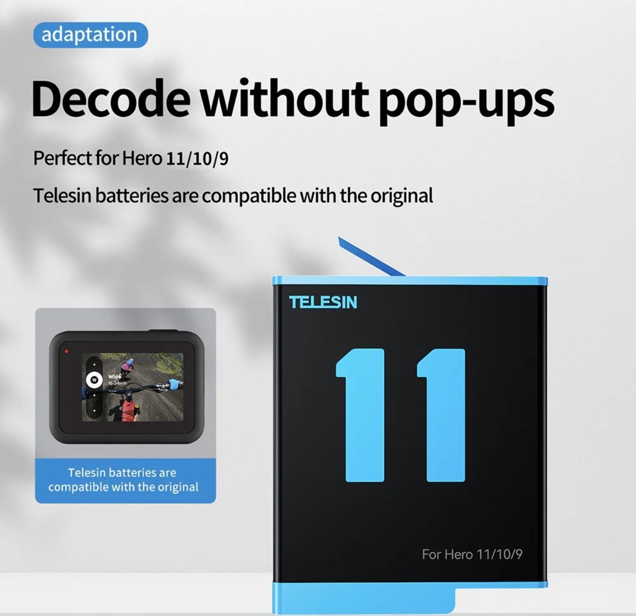 Аккумулятор Telesin для экшен камеры GoPro hero 12, hero 11, hero 10, hero 9, при использовании не выдает ошибку. С надежными аксессуарами Telesin, вы всегда будете готовы к съемкам В нашем магазине вы сможете приобрести все необходимые аксессуары для экшн камер и sup борда.