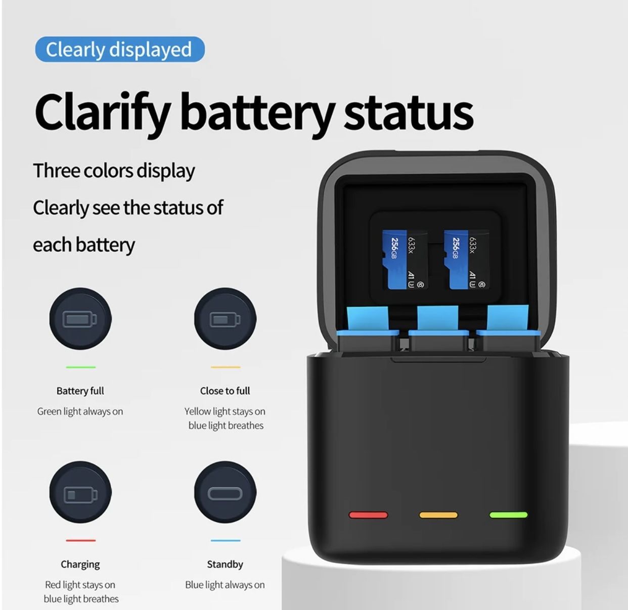 Описание: Зарядное устройство куб от производителя Telesin на три слота, с 3 аккумуляторами в комплекте, для GoPro Hero 12, Hero 11, Hero 10, Hero 9. Зарядное устройство Telesin оснащено индивидуальными световых индикаторами заряда, благодаря этому вы можете отслеживать заряд каждой батареи. • Красный - низкий уровень заряда