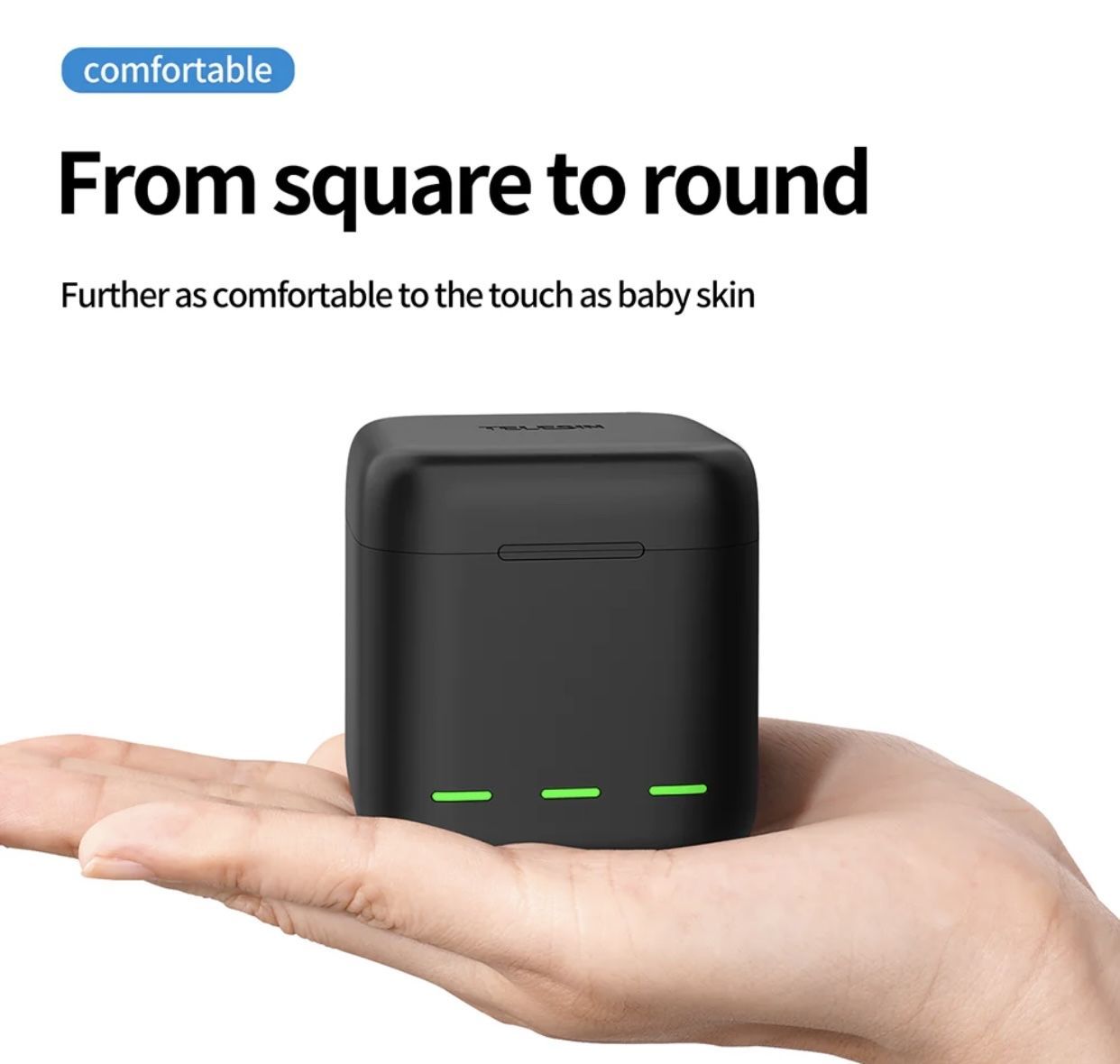 Куб Telesin заряжает быстро сразу 3 аккумулятора, для зарядки понадобится 2,5 часа. Куб очень приятный на ощупь, компактный, всегда найдется место для него с сумке.