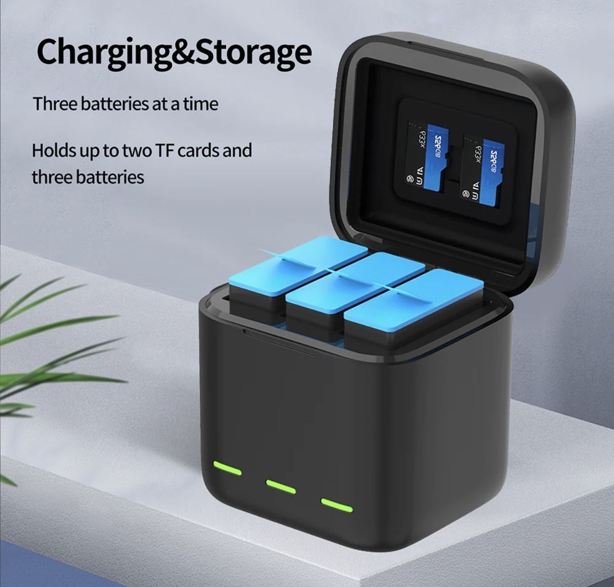 Набор зарядное устройство куб на 3 слота и 3 аккумулятора для GoPro Hero 12/11/10/9