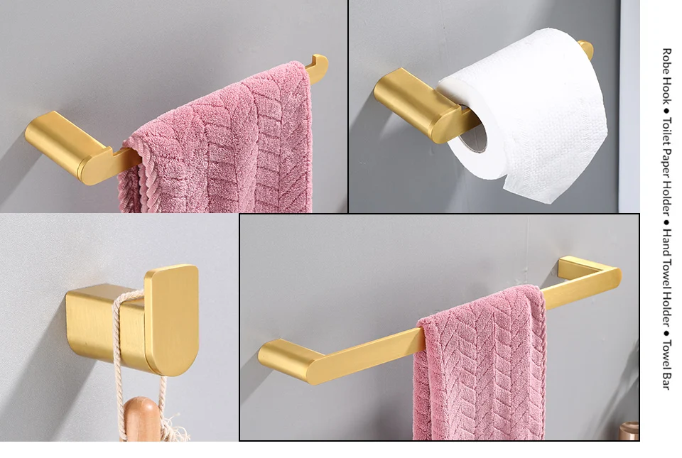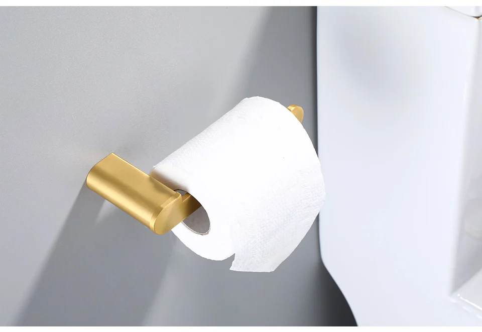 Набор золотистых аксессуаров для ванной комнаты, 4 настенных крючка для полотенец и халата, держатель для рулона туалетной бумаги, фурнитура из нержавеющей стали