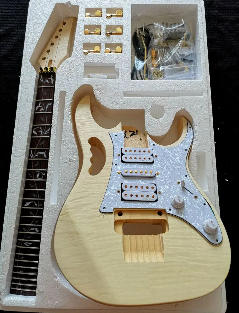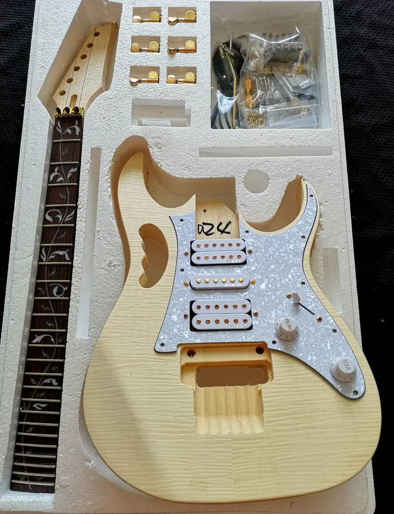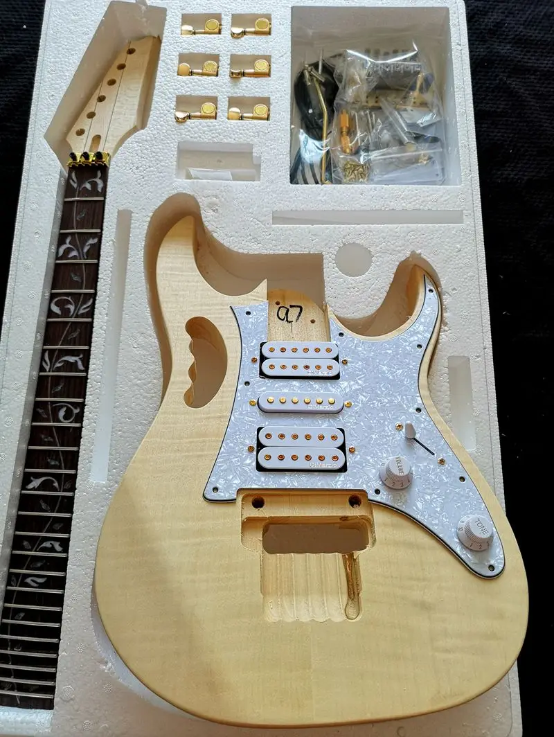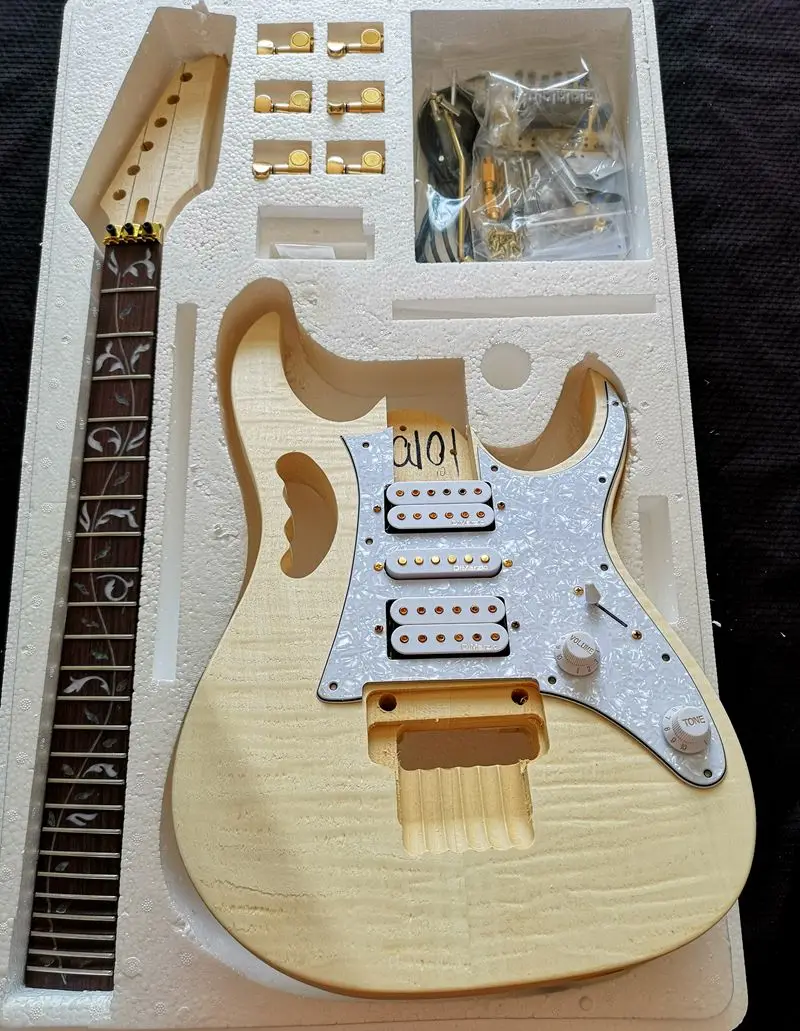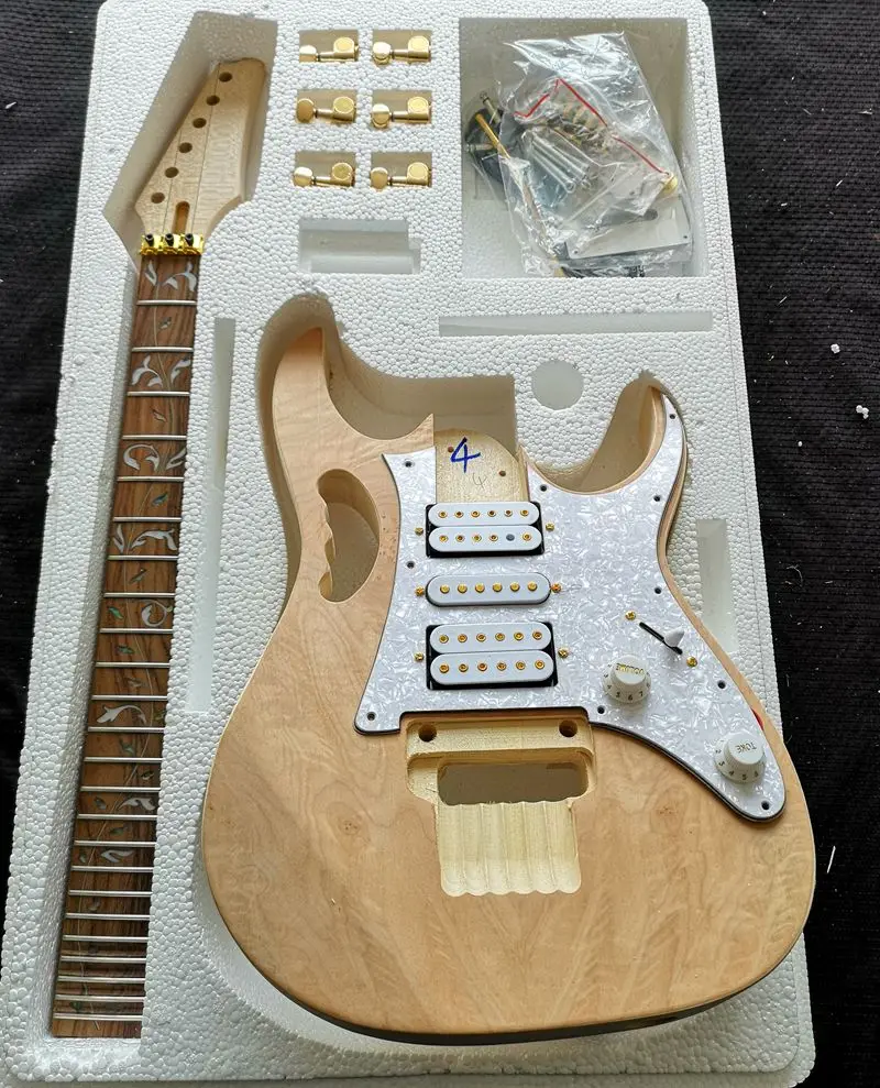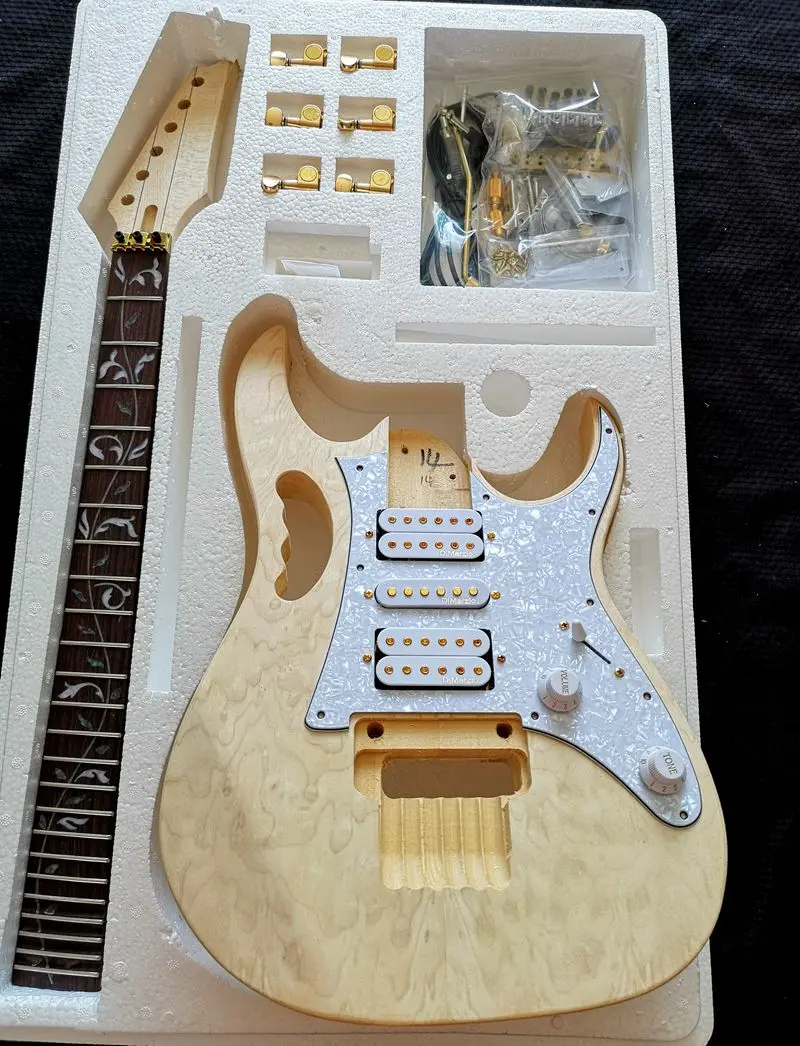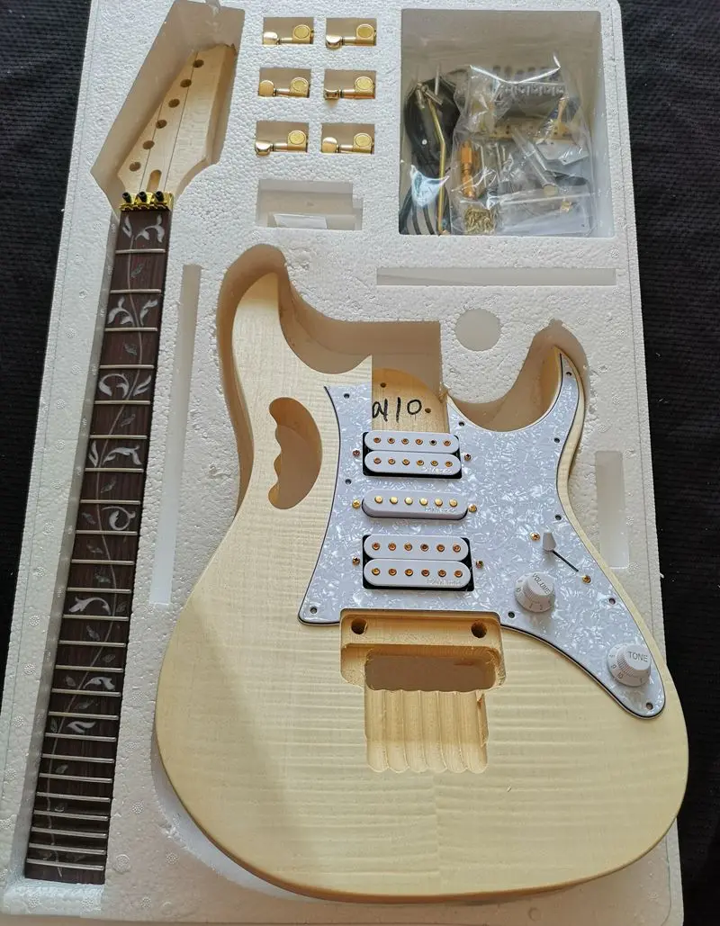 Наборы для необработанной электрогитары своими руками, рифленый корпус из липы, гриф из клена, инструмент для гитары со всеми элементами