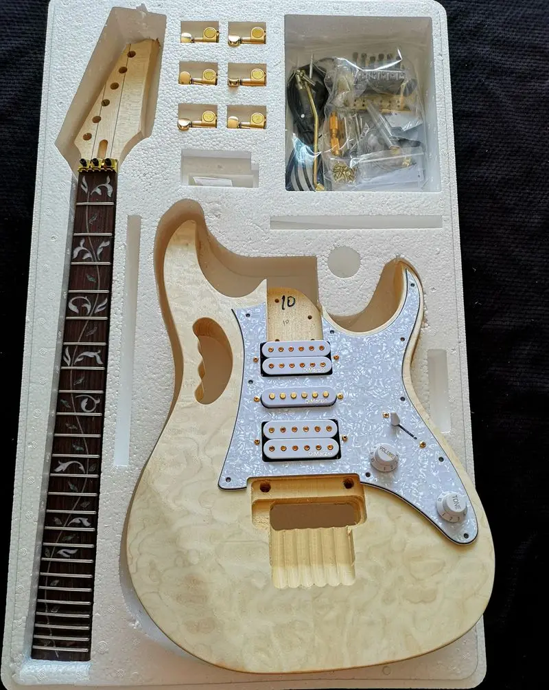 В этом наборе для гитары DIY есть все необходимое для создания собственной электрогитары. Вам понадобится только несколько основных инструментов и отделочных принадлежностей. Этот комплект включает в себя все детали и пошаговые инструкции для создания полной, играемой на заказ гитары. Все сложные Резки Древесины, бурения и формирования уже были профессионально сделаны, а также Лада выравнивания и одевания.