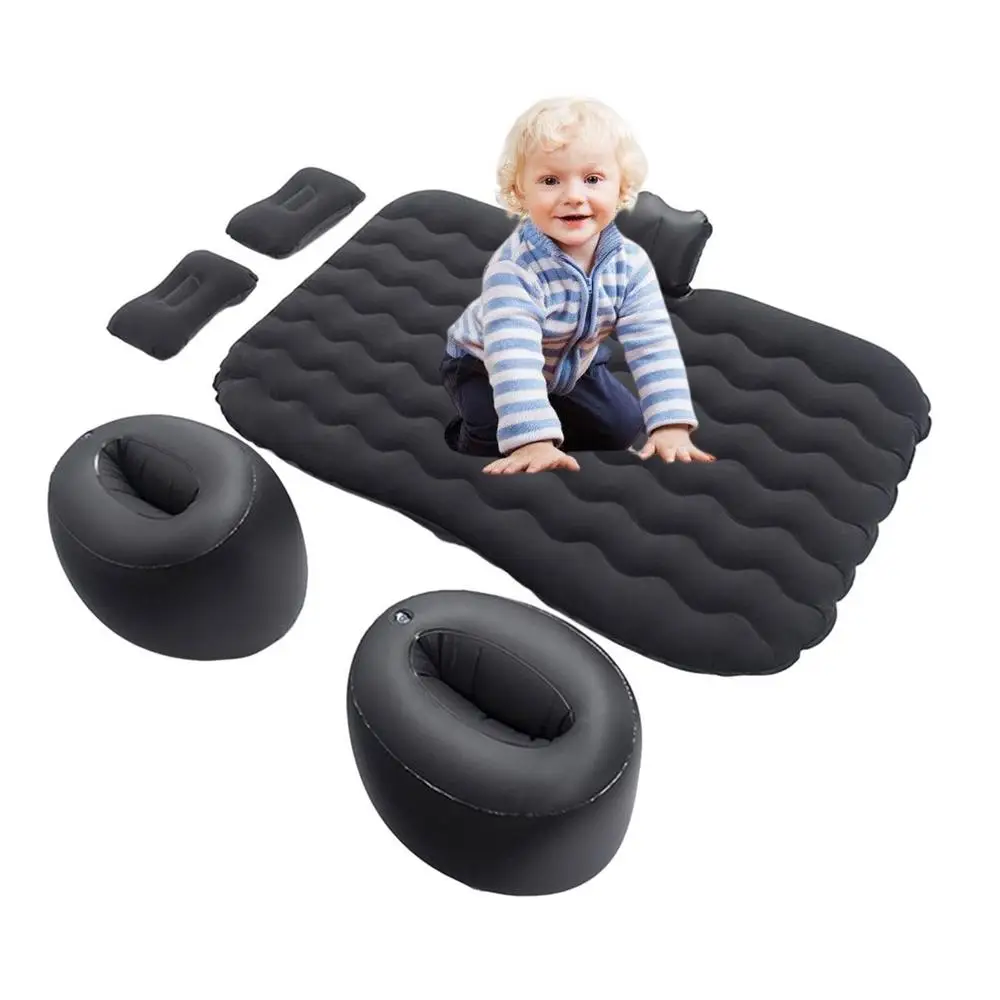 Надувной матрас для автомобильной кровати съемный, что позволяет интегрировать его, чтобы полностью растянуться на задних сиденьях или подобрать частичные подушки, чтобы вздремнуть на сиденье второго пилота, и поставляется с воздушными подушками и использует высококачественные материалы ПВХ с мягкими флокированными поверхностями, обеспечивая Вам комфортный сон.