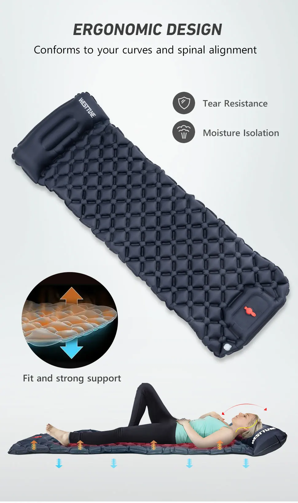 Надувной матрас для кемпинга, легкий, со встроенным насосом, воздушный матрас с подушкой, для пешего туризма, походов