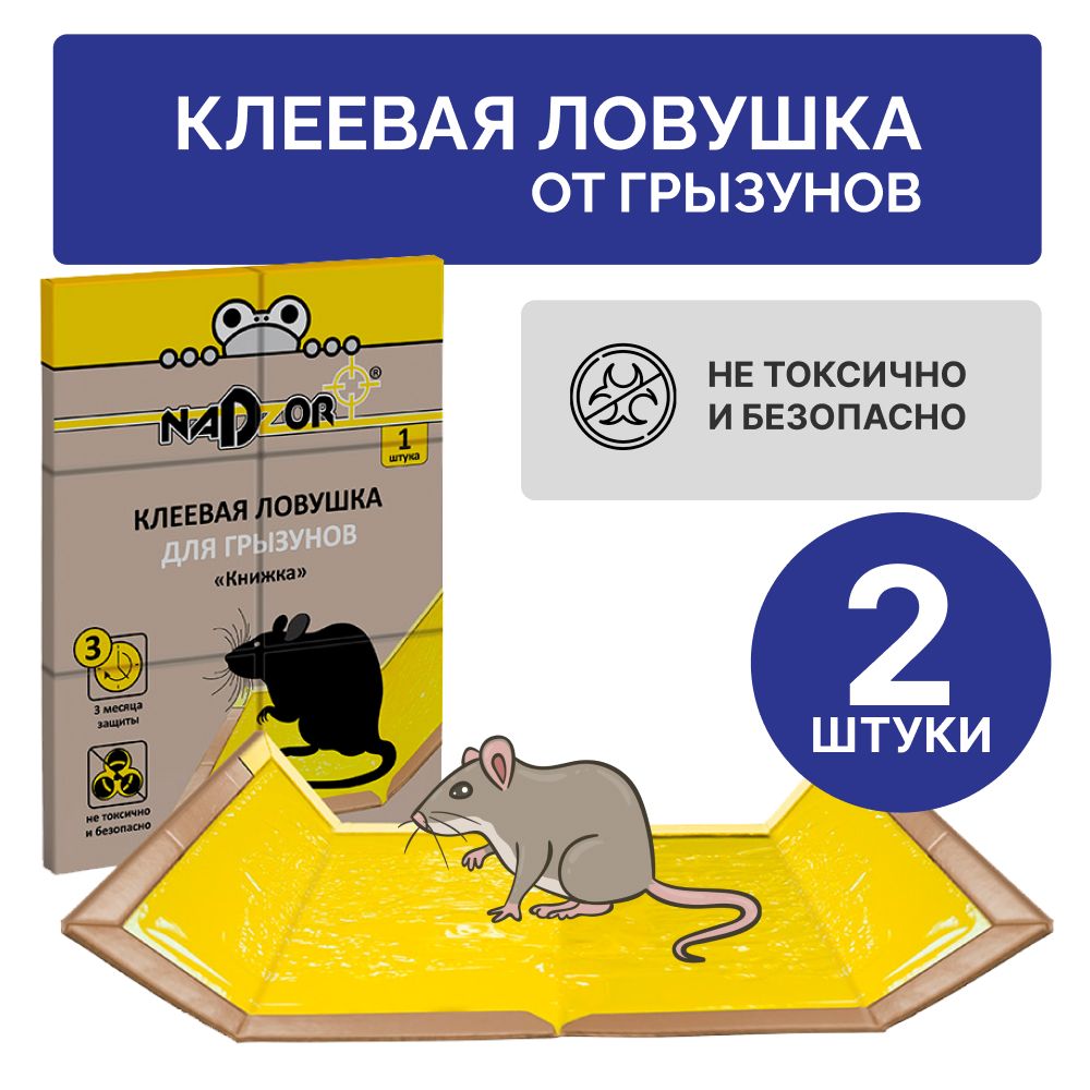 Nadzor Клеевая ловушка "Книжка" для крыс, мышей и других грызунов и вредителей, 2 шт.