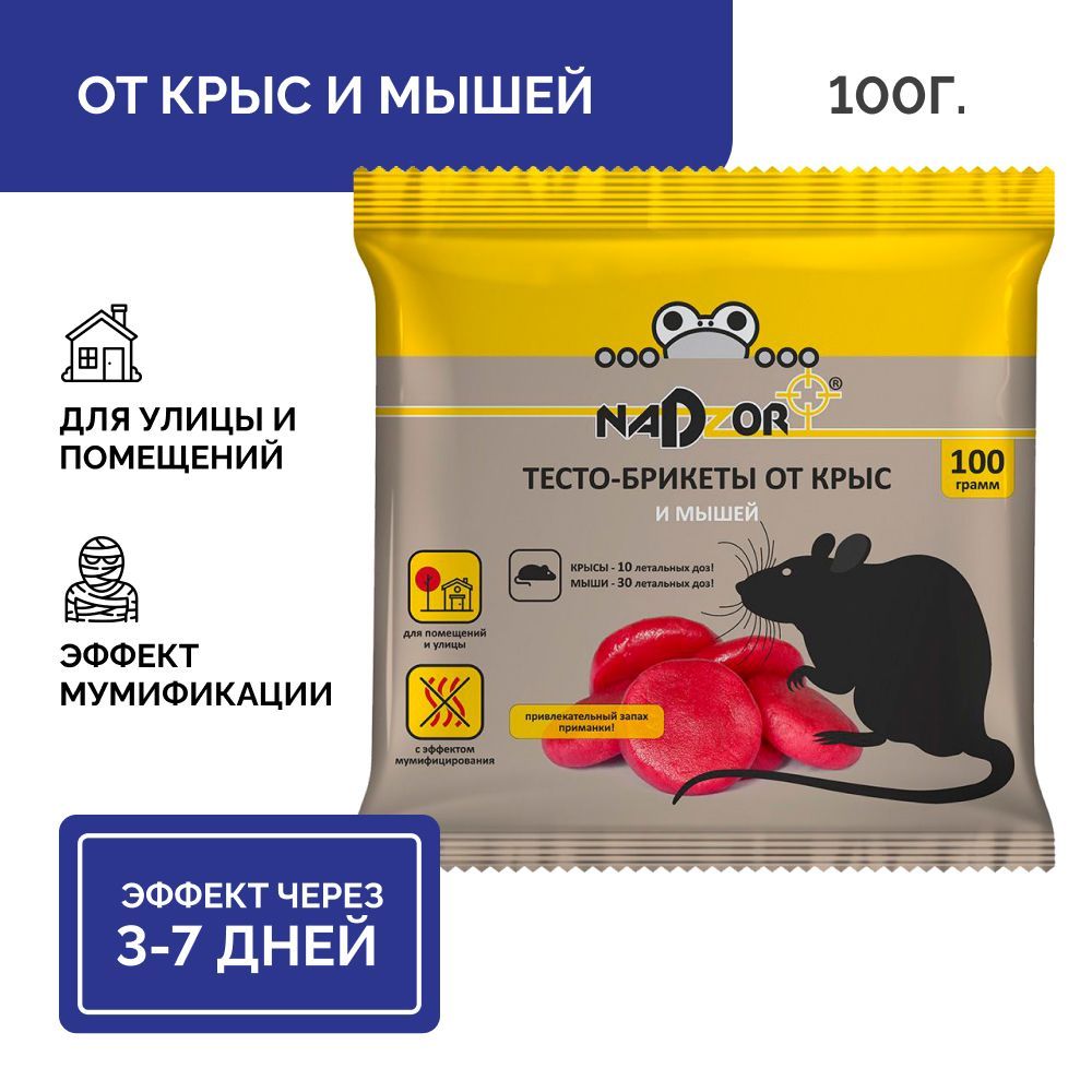 Nadzor Отрава для крыс и мышей, средство мумифицирующее, тесто-брикет 100 г.