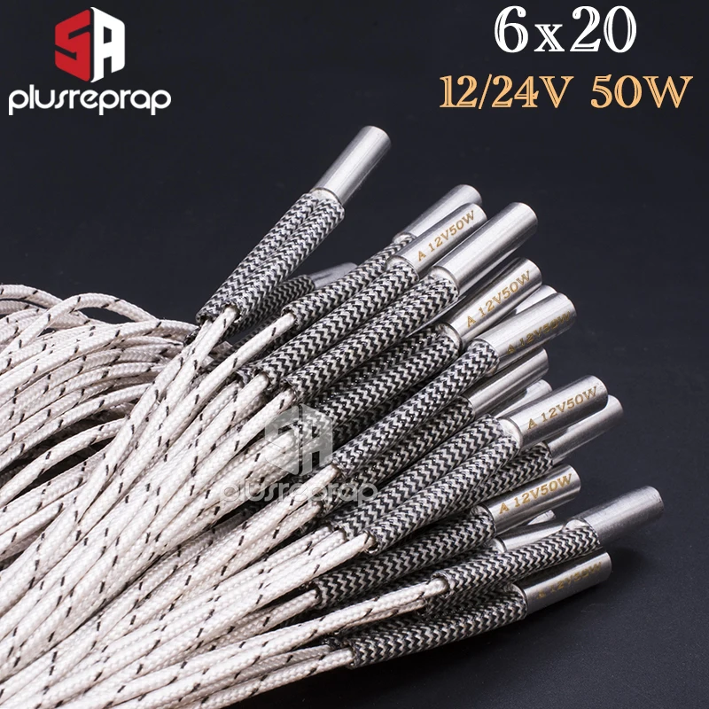 Нагреватель картриджа для 3D принтера 6*20 мм 12 В/24 В 50 Вт с кабелем 100 см для 3D-принтера V6 HOTEND Volcano MK8 MK9 CR10