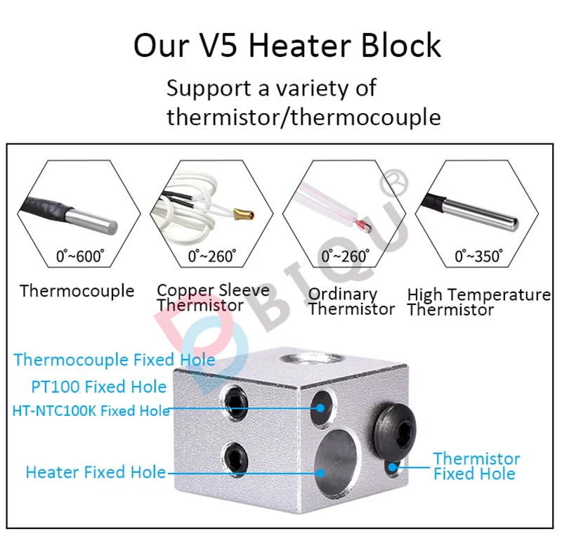 Нагревательный блок V5, алюминиевый блок V5, силиконовые детали для 3D-принтера VS E3D V6, блок подходит для J-head Hotend Bowden Extruder To Thermistor