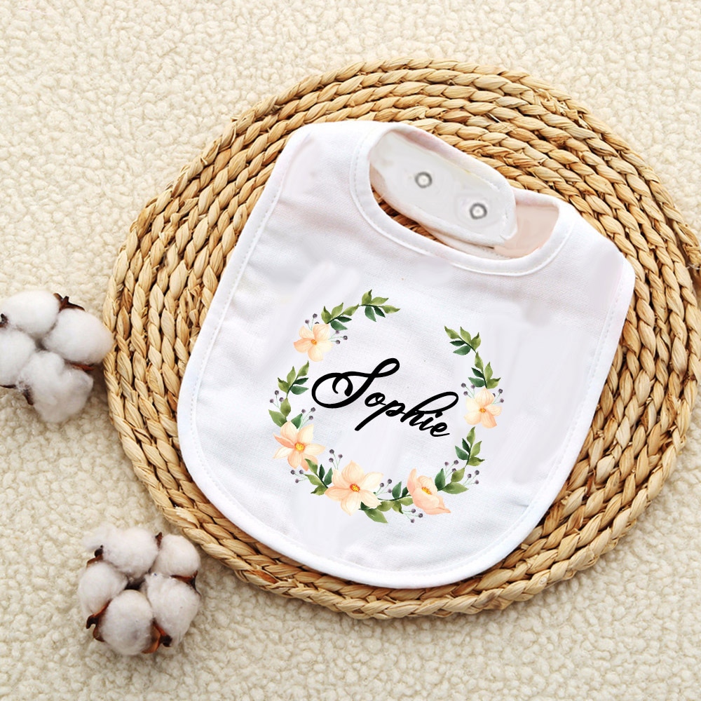 Индивидуальный детский нагрудник на заказ, венок с именем для девочек и мальчиков, хлопковые нагрудники для новорожденных, слюнявчик, полотенце с цветами, нагрудник для крещения, подарки для младенцев