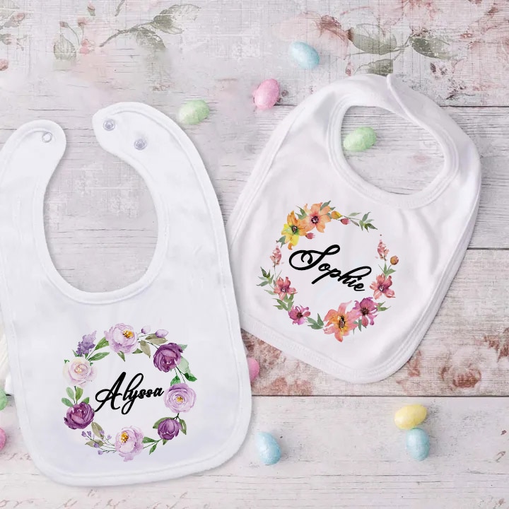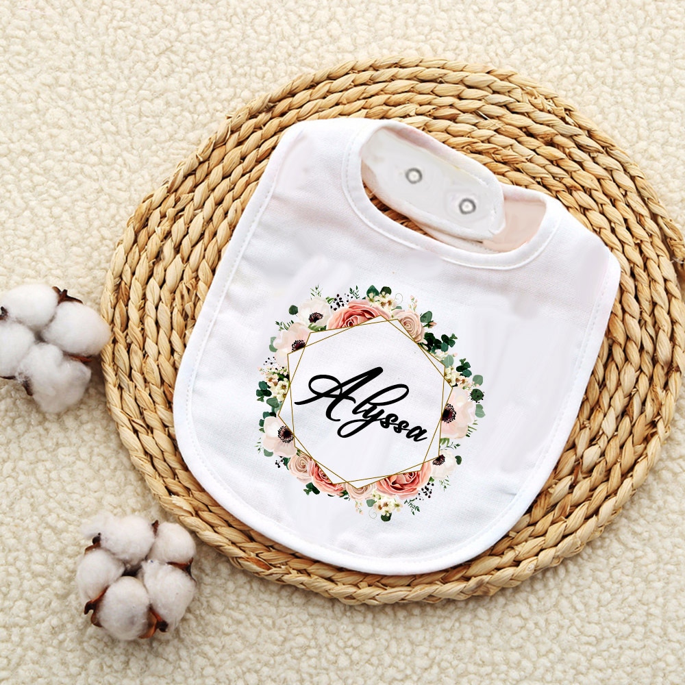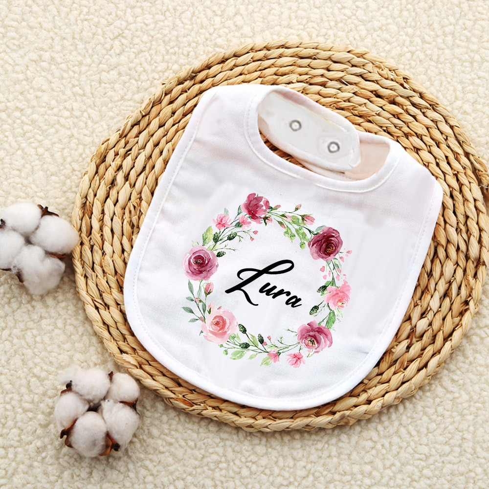 Нагрудник для младенцев, индивидуальный венок с именем, хлопковый слюнявчик для новорожденных девочек и мальчиков, Подарочный нагрудник с цветами для крещения
