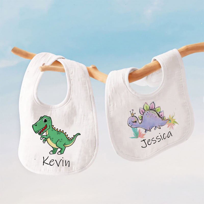 Персональный детский нагрудник с изображением динозавра на заказ, хлопковый нагрудник для девочек и мальчиков, слюнявчик для новорожденных, нагрудник для крещения, детский душ, подарки