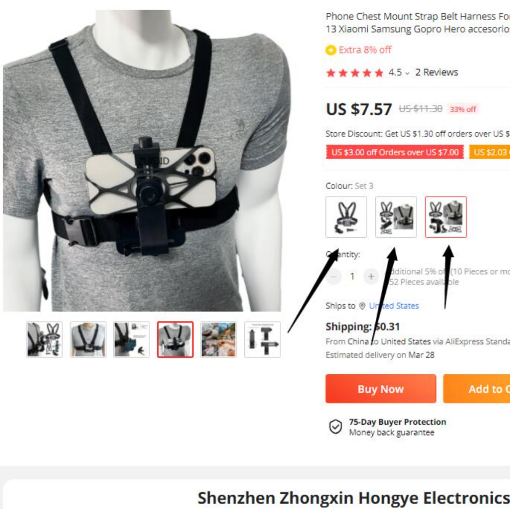 Easy-to-use, works with any smartphone model, can be used with a case, or waterproof case. The product makes it easy to take hands free video with your phone during almost any activity.
