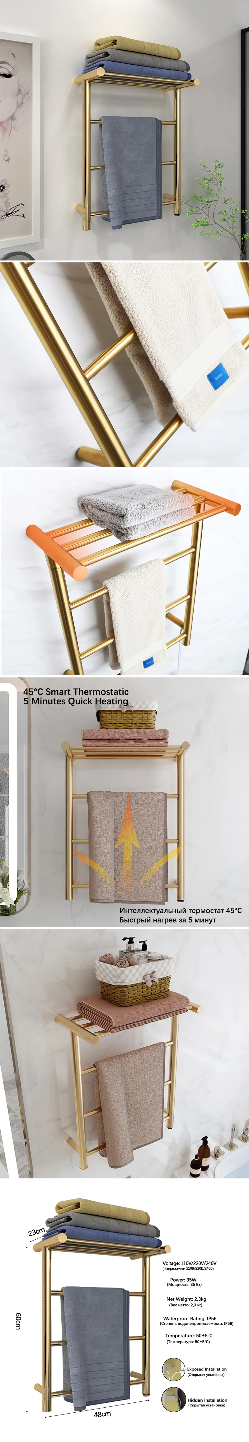 Накидная позолоченная/хромированная электрическая нагревательная вешалка для полотенец. Термостатическая сушилка для полотенец. 304 радиатор для полотенец из нержавеющей стали. Скрытый/открытый кабель.