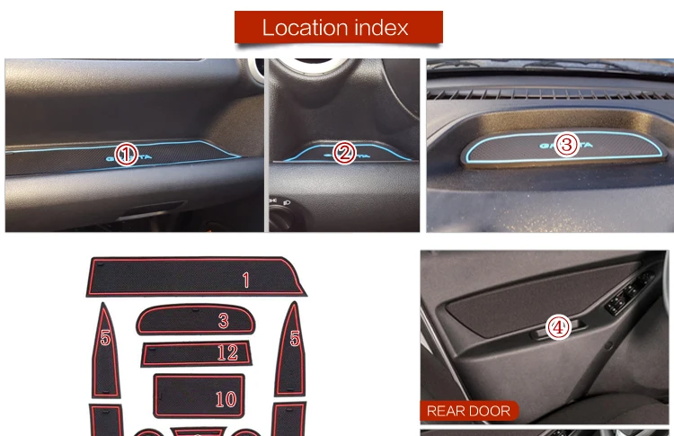 Накладки на ворота smabee для LADA GRANTA, Granta, спортивные Нескользящие Коврики для дверей/подстаканников, красный/синий/белый/черный, 9 шт.
