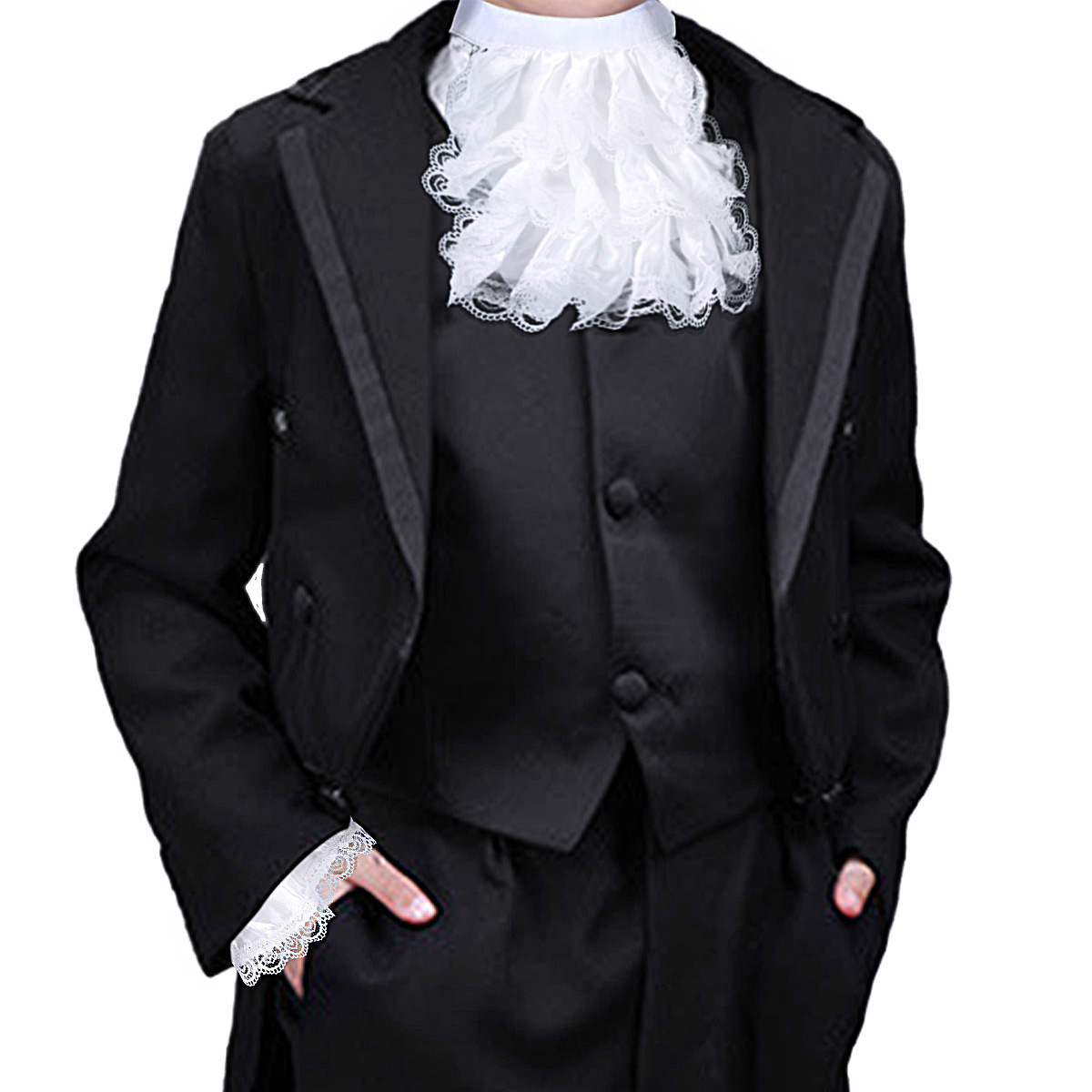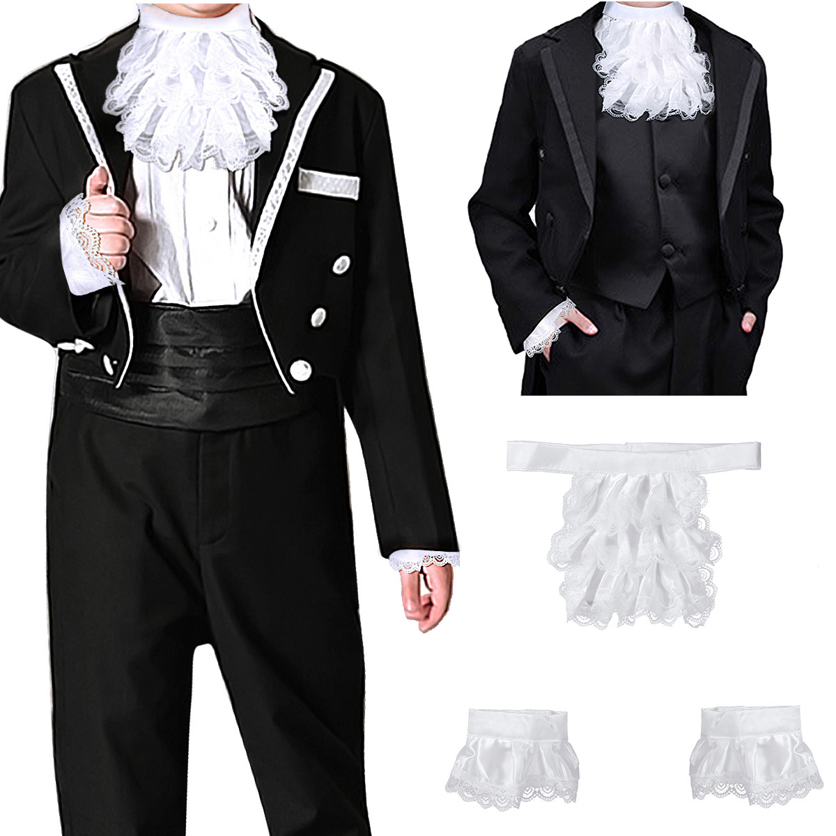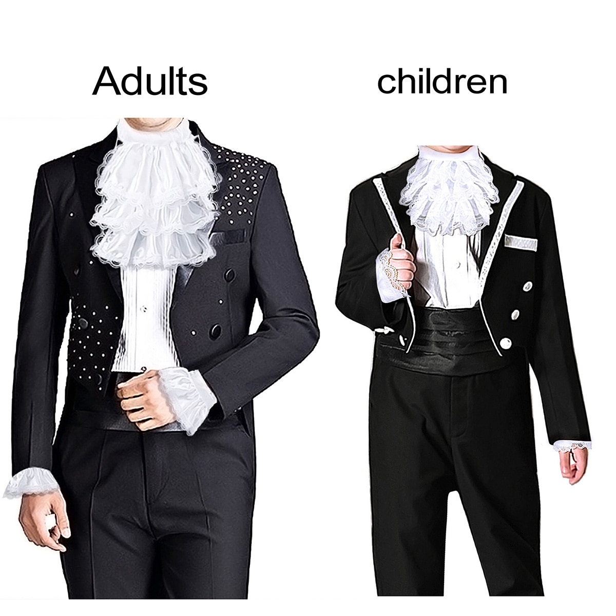 Детский Размер: длина жабо: ок. 17 см/6,7 дюйма; Обхват шеи жабо: ок. 50 см/20 дюймов; Ширина манжеты: ок. 8 см/3,1 дюйма, окружность манжеты: прибл. 20 см/7,8 дюйма