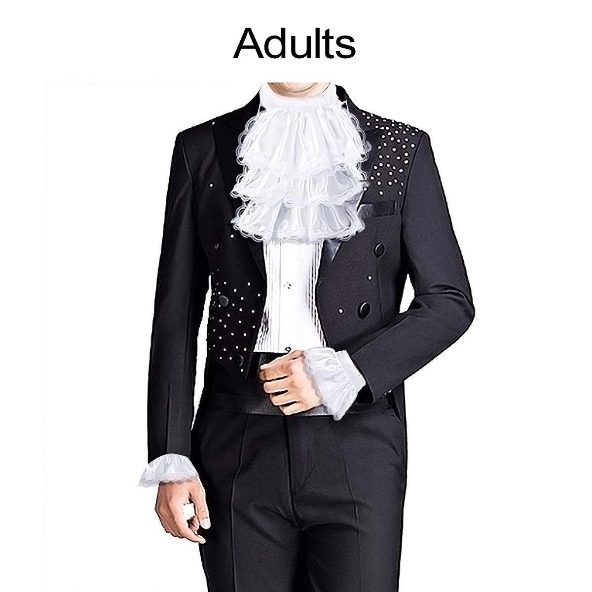 Взрослый размер: длина жабо: около 24 см/9,4 дюйма; Обхват шеи жабо: около 54 см/21 дюйм; Ширина манжеты: прибл. 10 см/3,9 дюйма, окружность манжеты: прибл. 24 см/9,4 дюйма