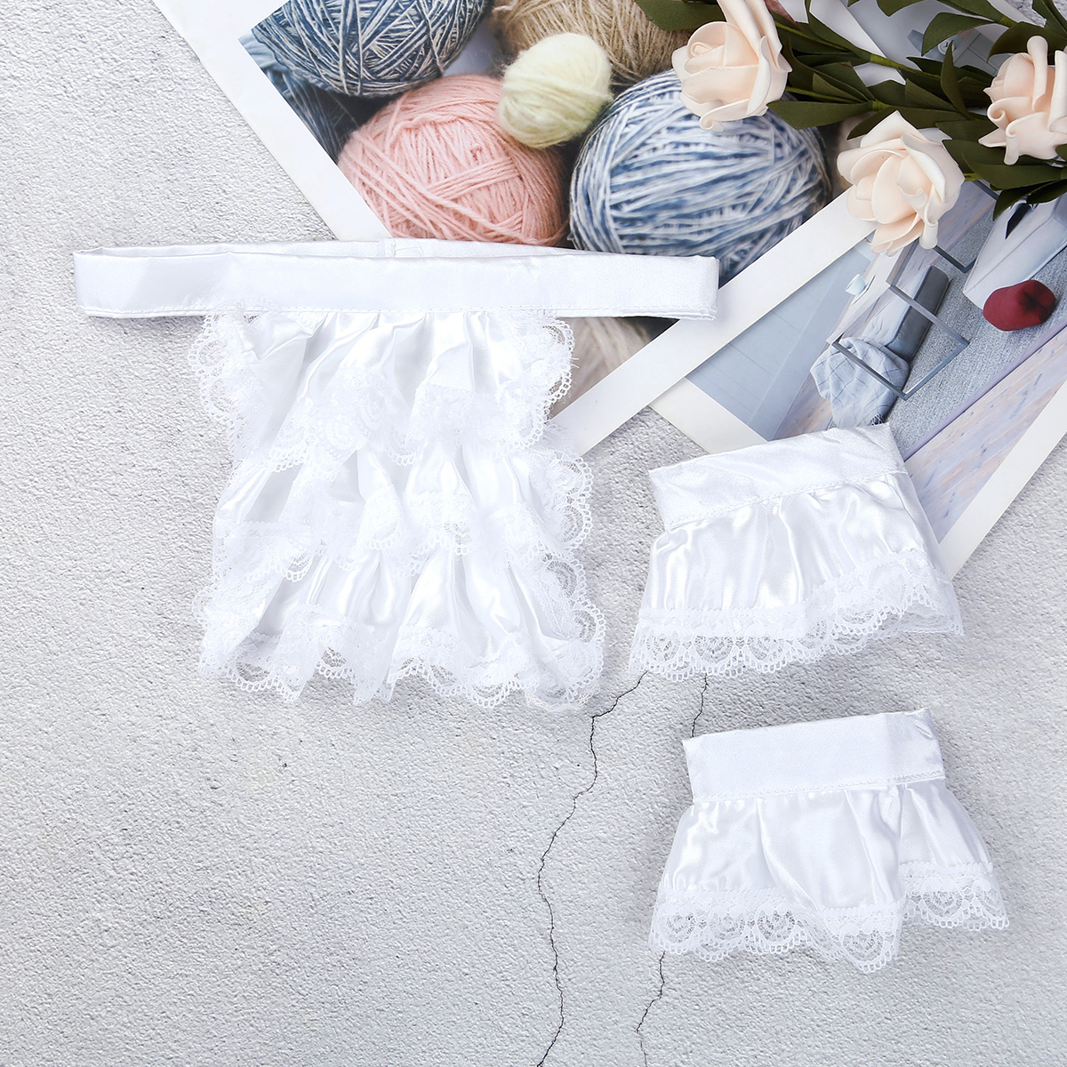 • Изготовлен из атласного и кружевного материала, мягкий и гладкий на ощупь.