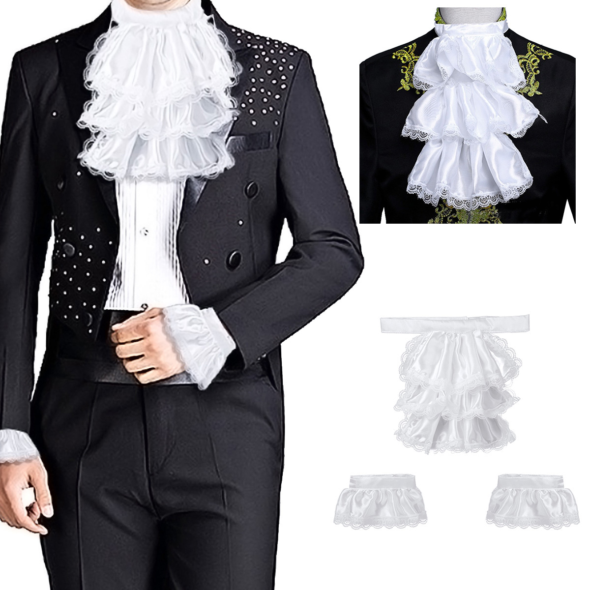 Комплект включает: 1 жабо, 1 пара манжет