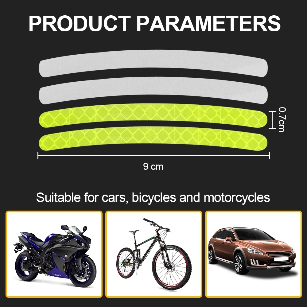 Светоотражающие наклейки для колес: ночью или в темноте эти светоотражающие наклейки с высокой видимостью выделяются на дороге, точно отражая светильник для водителя, привлекая внимание и напоминая им о необходимости соблюдать дистанцию, повышение безопасности вождения.