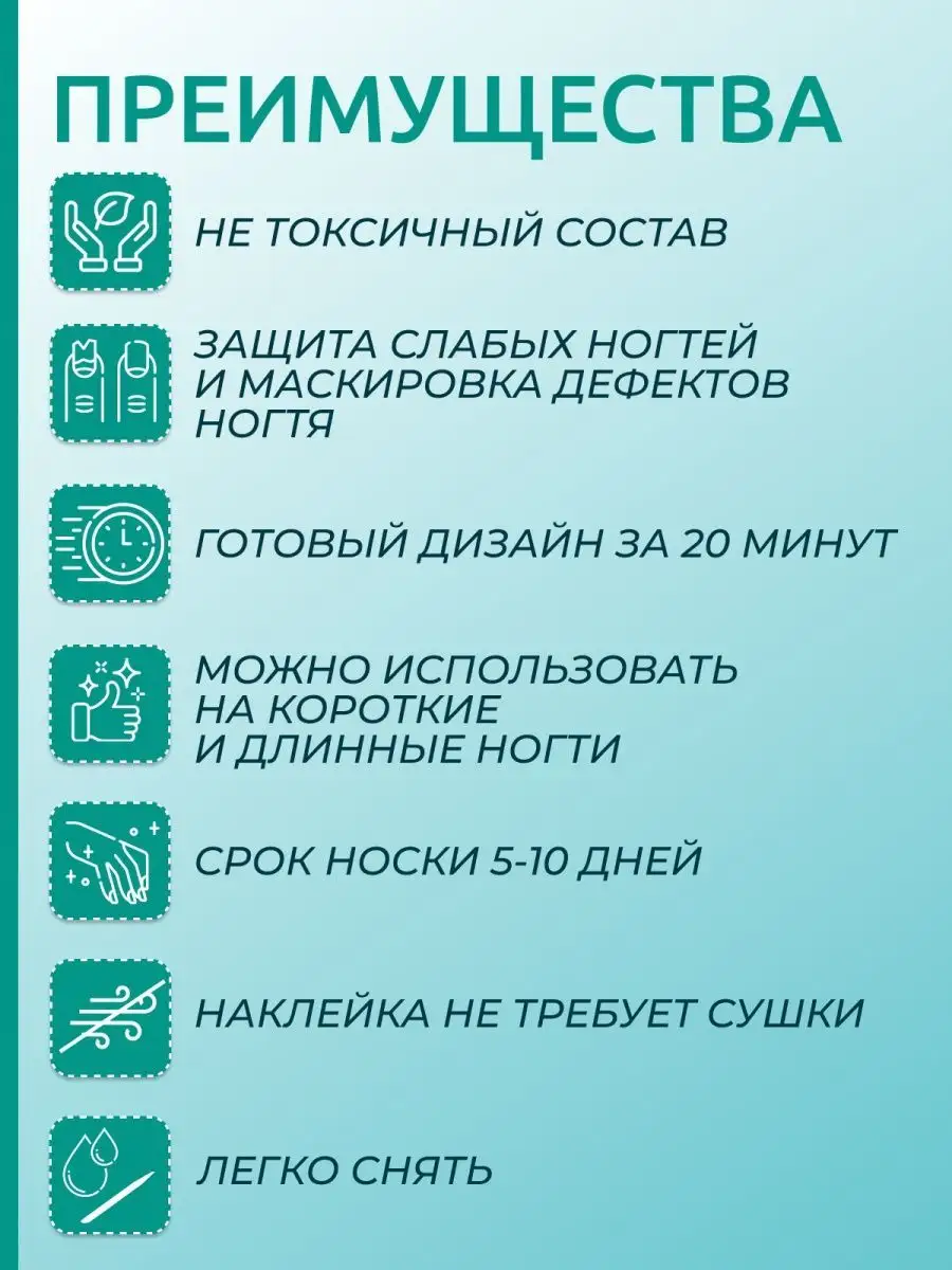 Комплектация Пленки для маникюра 1 слайдер; пилка; апельсиновая палочка; спиртовая салфетка