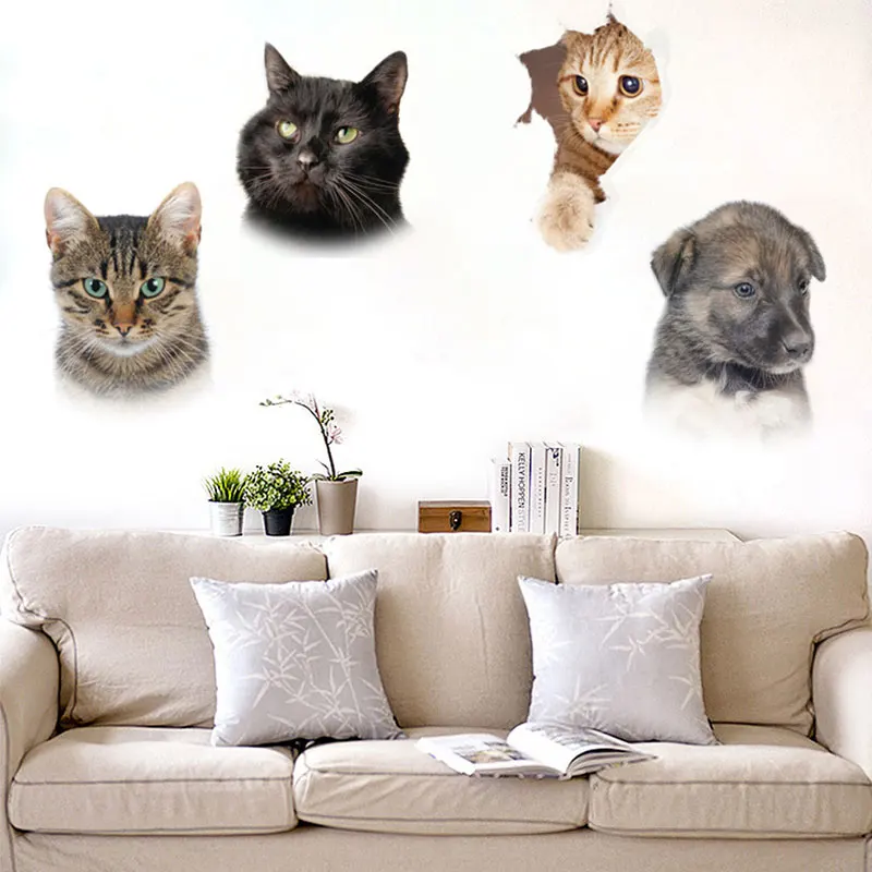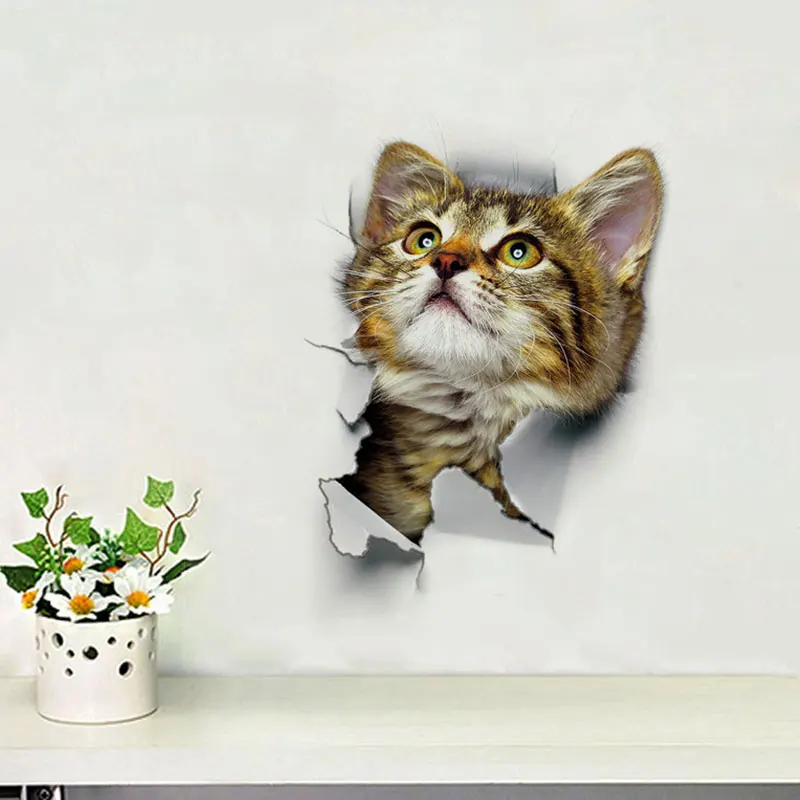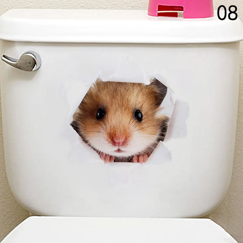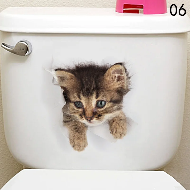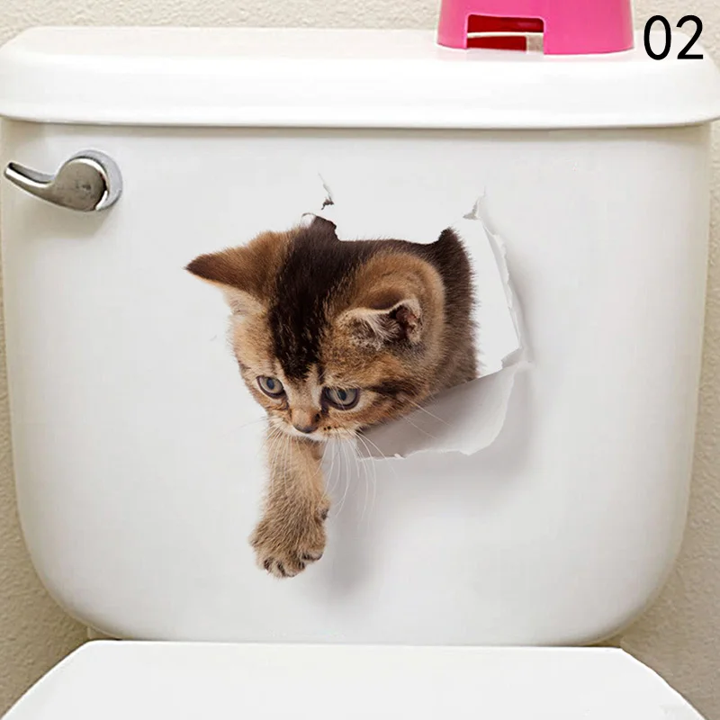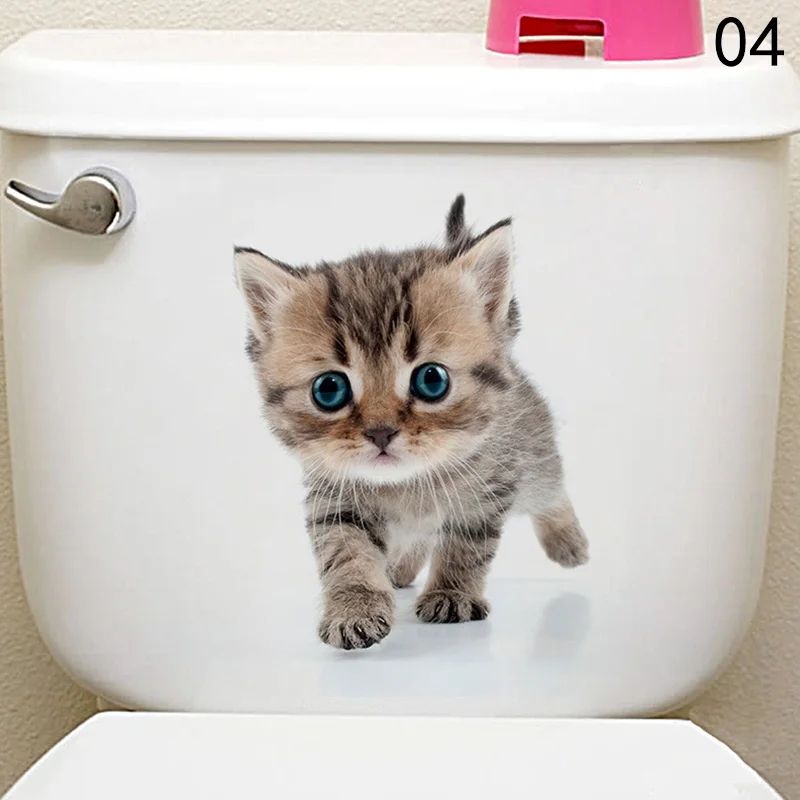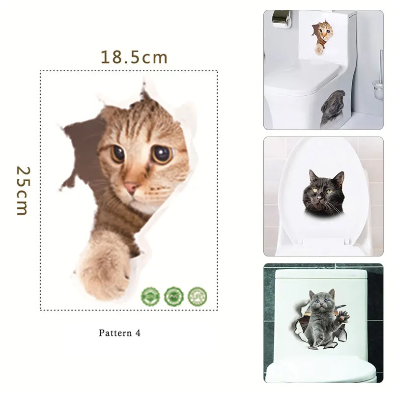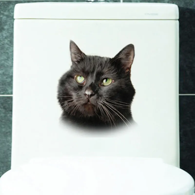 Toilet Stickers 3D Cat Vivid Wall Sticker 2021 Fashion Lovely Animal Pvc Waterproof Decal For Bathroom Toilet Kicthen Decorative New Arrival
