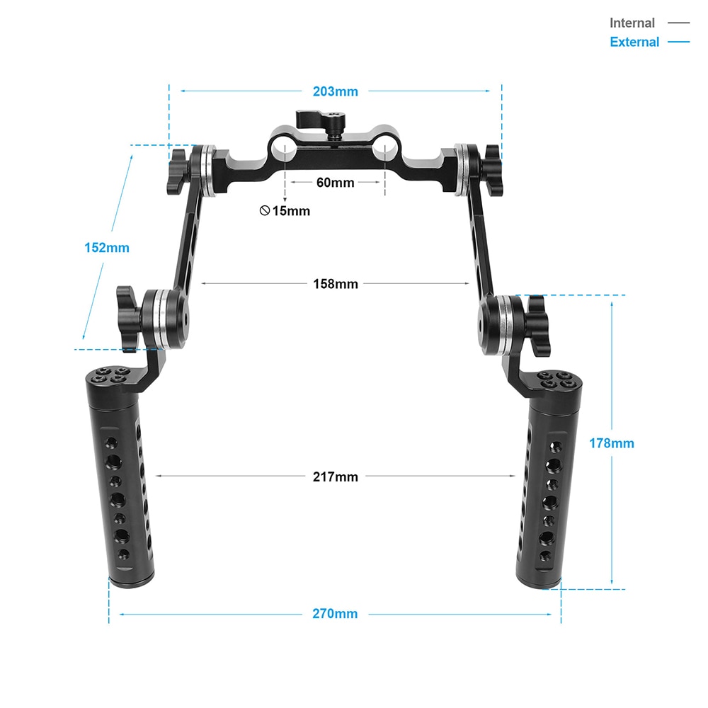 • 15-миллиметровое плечевое крепление на рейку Гибкая конструкция, легко трансформируется в различные режимы съемки.