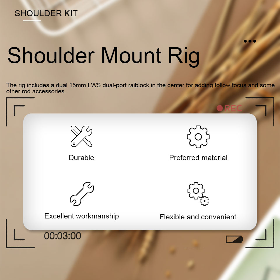 • Это Kayulin плечо крепление Rig особенности, чтобы улучшить стабильность Ваших снимков с рук, добавив плечо площадку и двойной деревянной рукоятки (с розеткой крепление подключения) к настройке камеры. Независимо от того, снимаете ли вы с помощью небольших камер HDSLR или больших видеокамер, он обеспечивает поддержку и универсальность в соответствии с вашими потребностями.