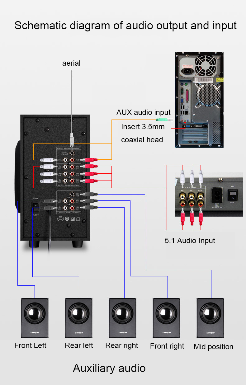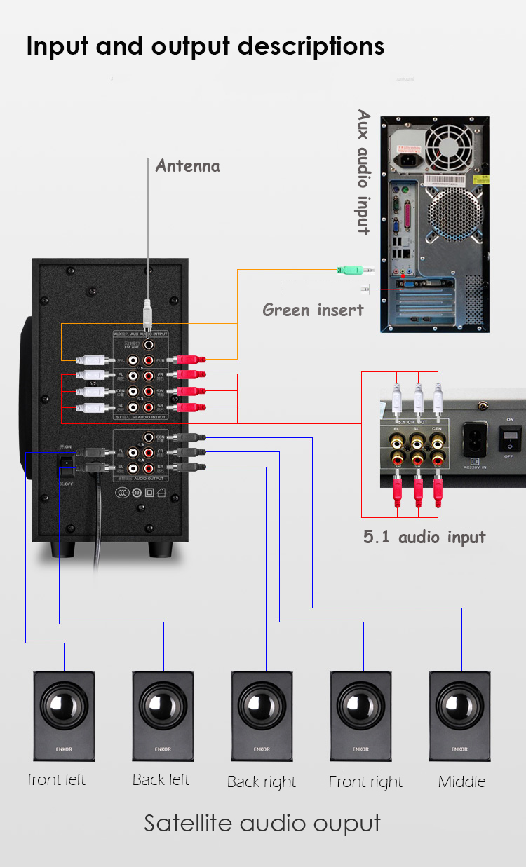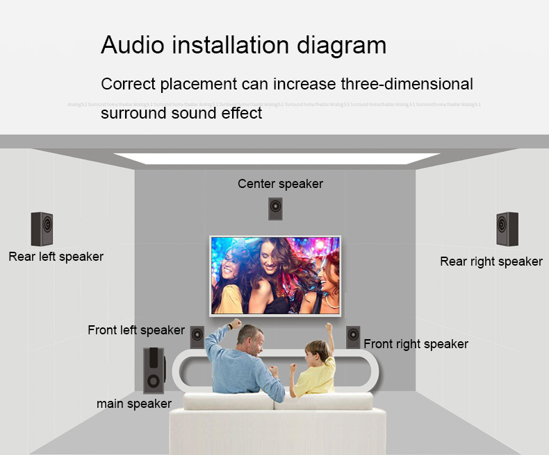 1. Аналоговый объемный звук 5.1 домашний кинотеатр.