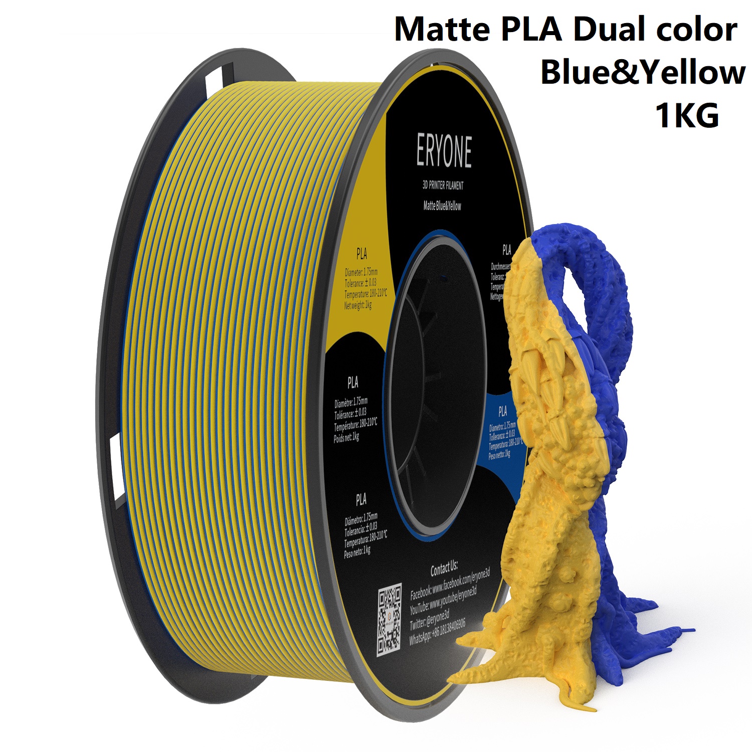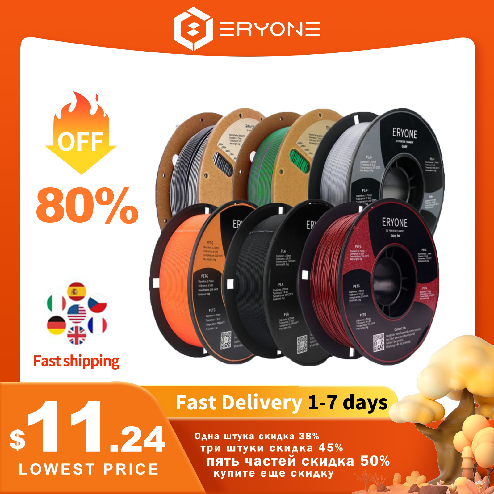 Продвижение по расчистке запасов Eryone RU Только 1 кг рулон нити диаметром 1,75 мм для 3D-принтера FDM PETG двухцветный PLA Бесплатная доставка
