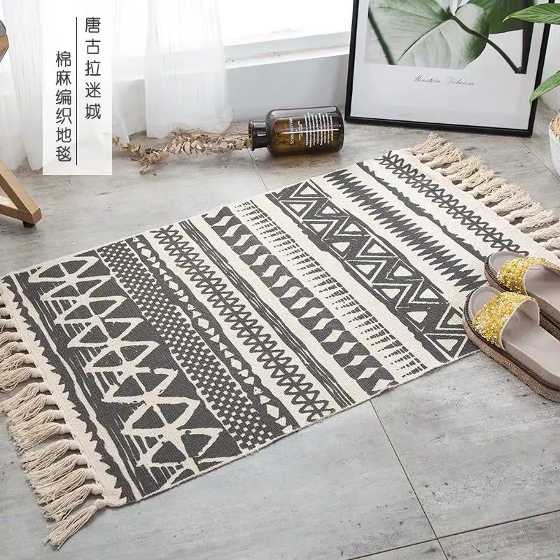 Напольные коврики из хлопка и льна в скандинавском стиле, коврики в этническом стиле, коврики для дверей, коврики для ног, для спальни, для входа, Нескользящие коврики, домашние богемные одеяла