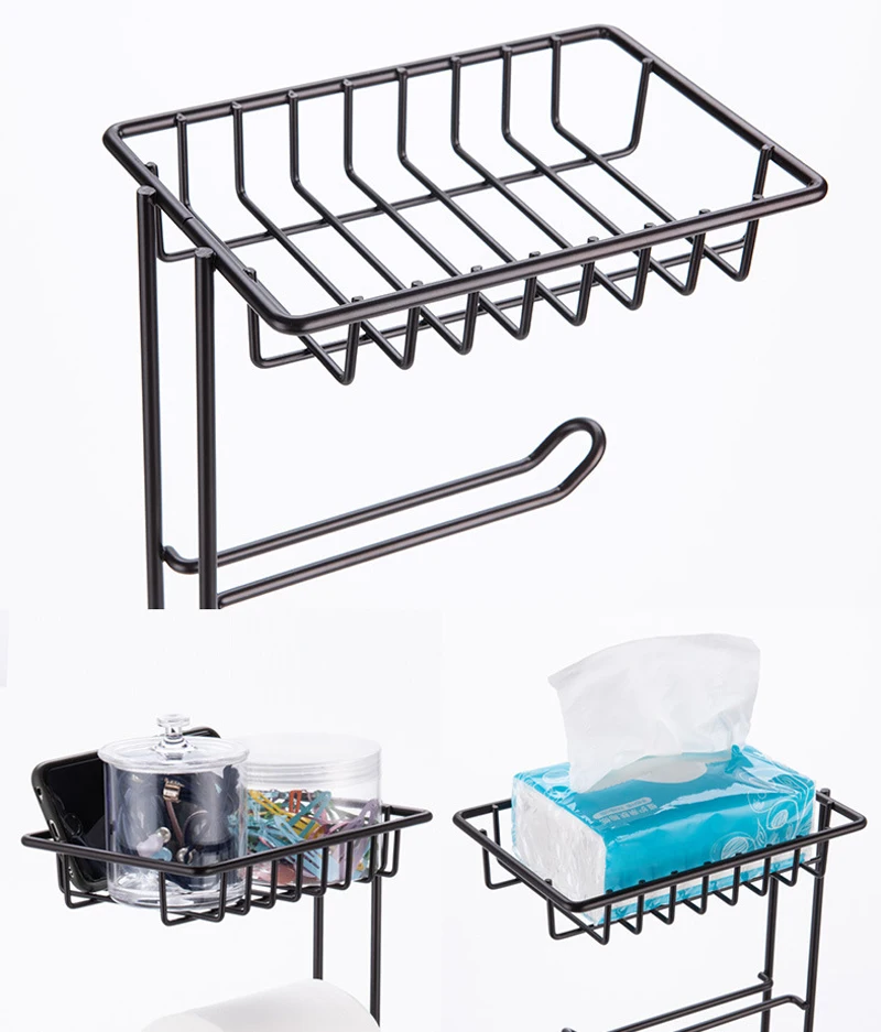 Floor Standing Toilet Paper Roll Towel Holder Metal Bathroom Paper Rack Vertical Storage Basket Storage Shelf for Cell Phone