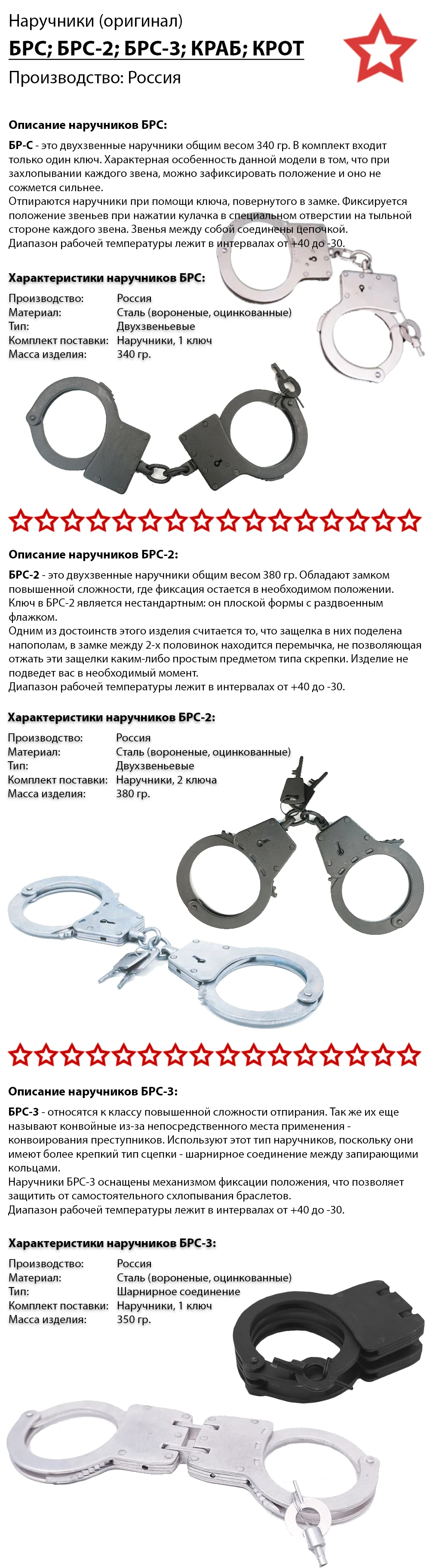 Наручники БРС БРС-2 БРС-3 КРАБ КРОТ Оригинал полицейские для охранников Чехол для наручников