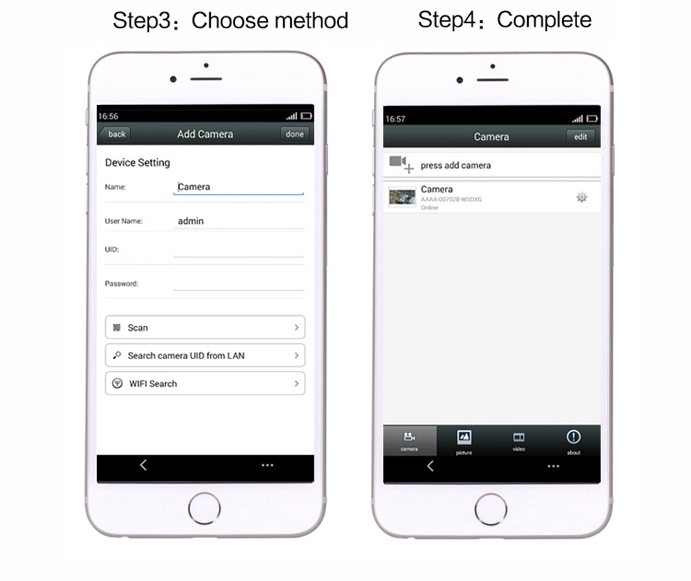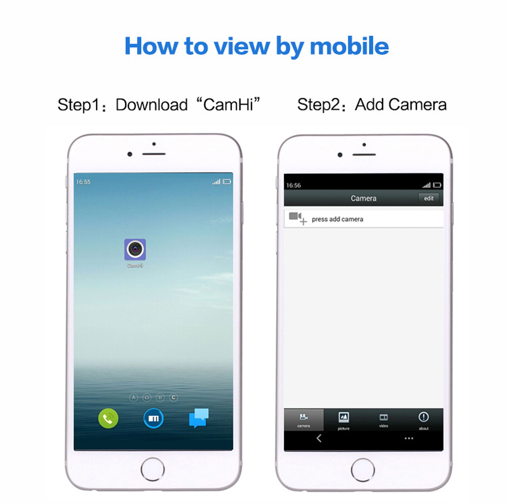 Mobile Phone View Android / iPhone app "CamHi" or "CamHipro"